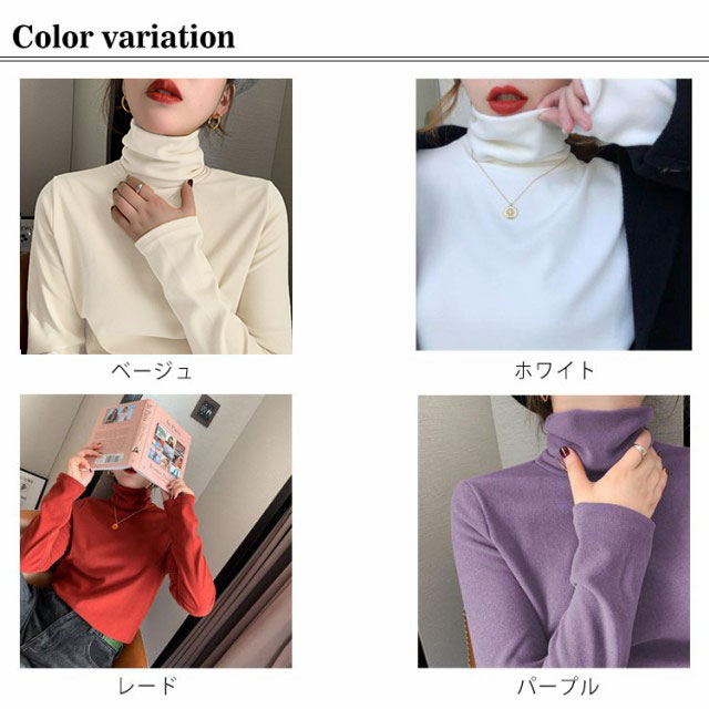 送料無料 あたたか カジュアル タートルネック レディース 長袖 Tシャツ 裏起毛 カットソー トップス インナートップス ロンT 長袖 tシャツ 無地 体型カバー 秋 冬 シンプル ソフト 重ね着 洗える ハイネック