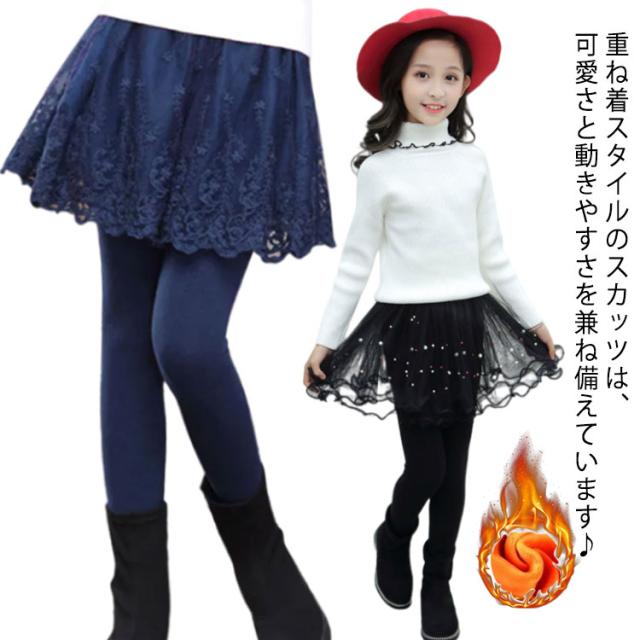 子供服 【送料無料】ストレッチ レギンス レース 秋服 フレア あったか パンツ 無地 キッズ 女の子 秋冬 付き 子ども服 スカッツ スカート 厚手 防寒 保温 冬物 裏起毛 韓国 150 かわいい ウエストゴム 110 120 130 140 付き 160 カジュアル