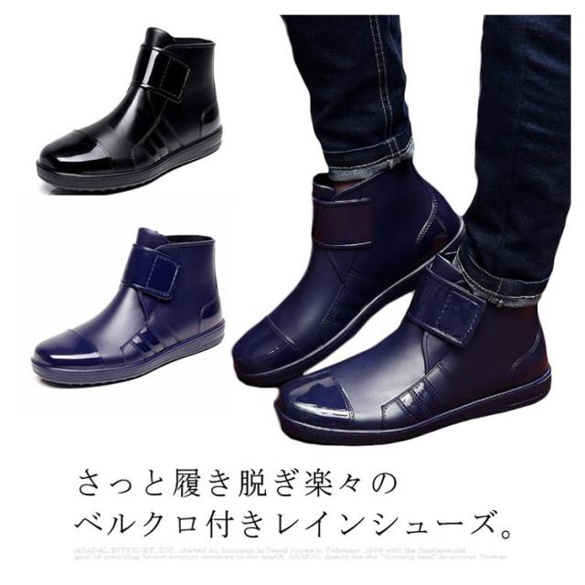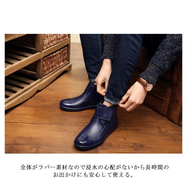 レインシューズ メンズ 梅雨 レインブーツ 雨靴 かっこいい スニーカー マジックテープ 防水 お洒落 かっこいい ラバーシューズ 裏起毛 長靴 雪 秋冬 ショート丈