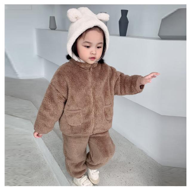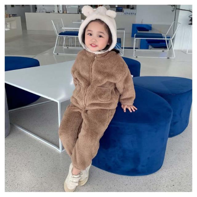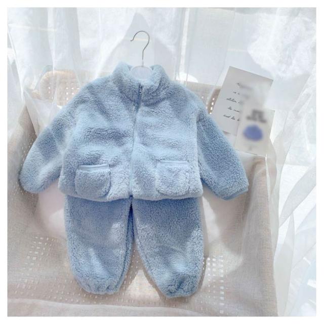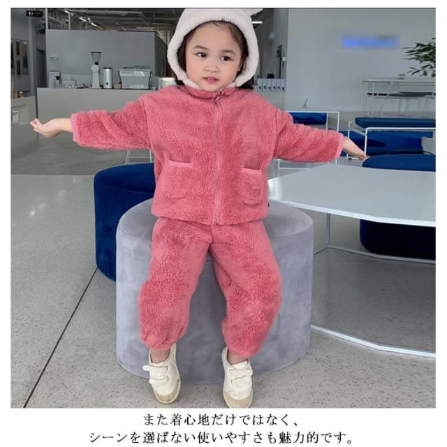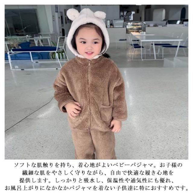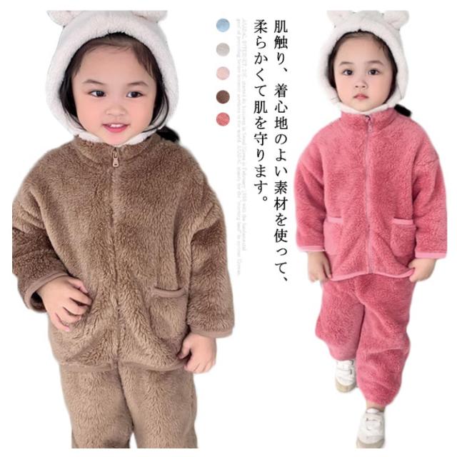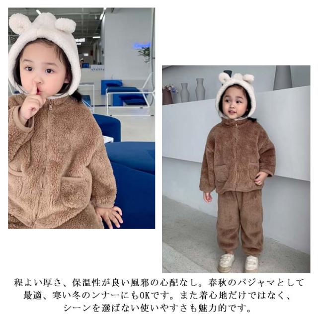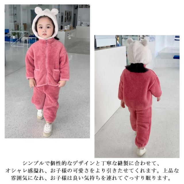 パジャマ 長袖 男の子 前開き ルームウェア 冬 もこもこ 綿 無地 上下セット 女の子 防寒 裏起毛 暖かい 子供 可愛い 寝巻き ナイトウェア キッズ お揃い 90 100 110 120 130