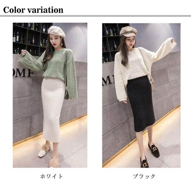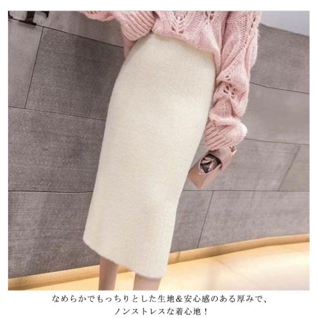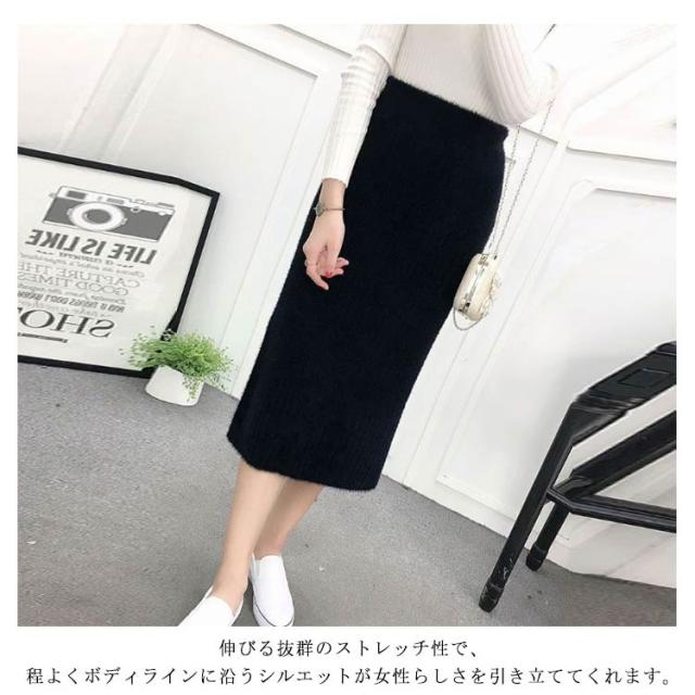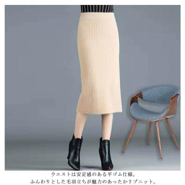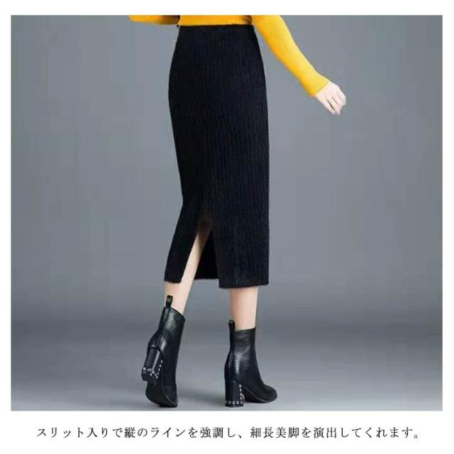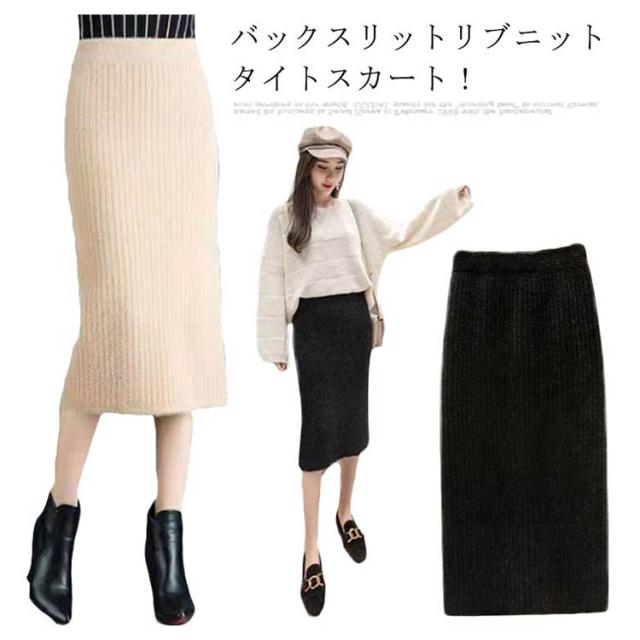 秋 防寒 リブニット 保温 ニットスカート スカート ボトムス タイトスカート スリット バックスリット タイトスカート 冬 ロング ロングスカート マキシ丈 ウエストゴム 無地 美脚 もこもこ 柔らかい あったか 送料無料 ハイウエスト