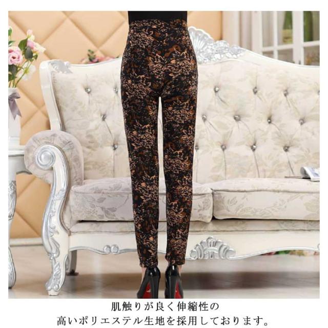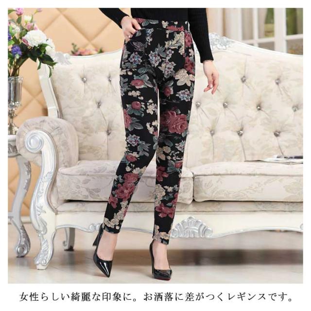 美脚 スパッツ 裏起毛 タイツ 花柄 厚手 総柄 20代 レディース 伸縮性 綿 10分丈 春 秋 秋冬 冬 【送料無料】レギンス 保温 防寒 ゆったり ストレッチ おしゃれ 40代 30代 【送料無料】レギンス 50代 60代 大きいサイズ L 2L あったか
