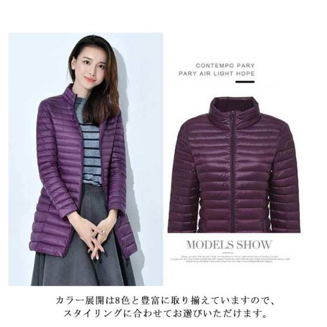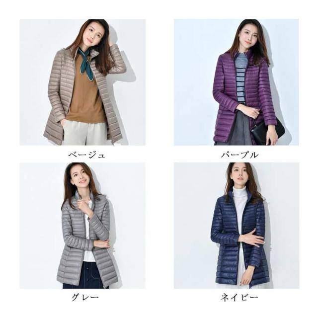 レディース コンパクト ジャケット コート ネイビー 軽量 ダウン 秋冬 ロング あったか ハイネック 長袖 ライトダウン 【送料無料】インナーダウン 防寒 保温 暖かい 50代 40代 30代 50代 20代 ブラック ベージュ アウター
