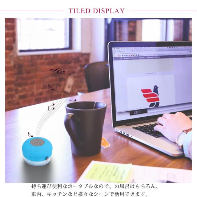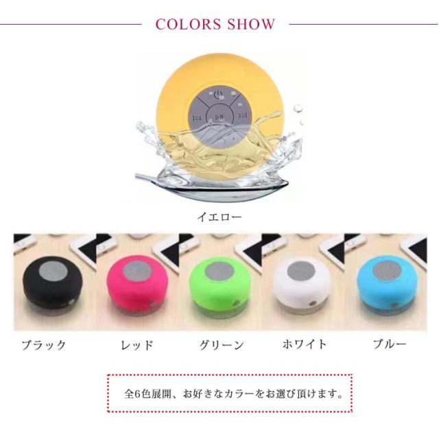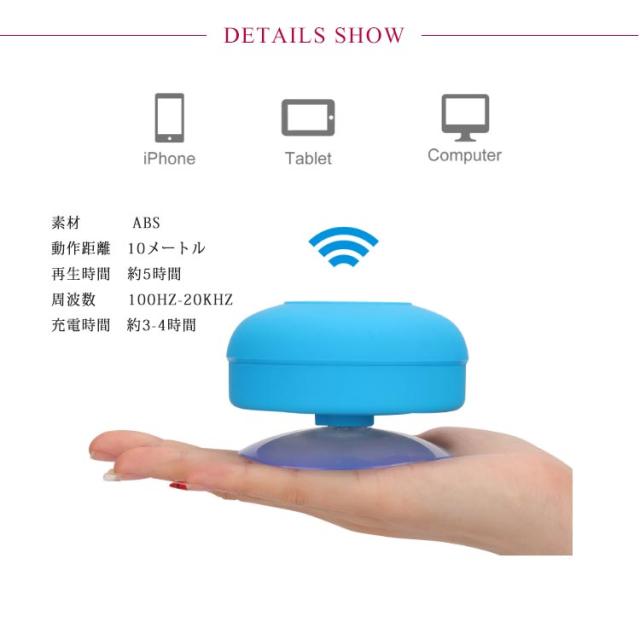 | お風呂タイムをもっと楽しく♪ お風呂やシャワーでもハンズフリー通話・音楽を楽しめる♪防水ワイヤレススピーカー。 吸盤付きで、浴室の壁やタイル、鏡などに取り付けることができます。 操作簡単!Bluetoothでスマホに接続するだけ。一度ペアリングすれば、2度目からは自動ペアリング。 持ち運び便利なポータブルなので、お風呂はもちろん、車内、キッチンなど様々なシーンで活用できます。 全6色展開、お好きなカラーをお選び頂けます。 | |