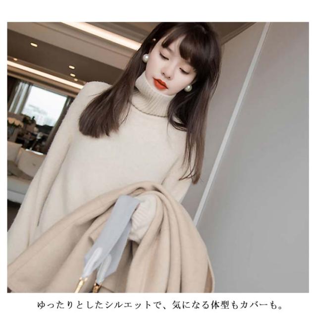| 全5サイズ・2色・タートルネックニットワンピース ゆったりとしたシルエットで、気になる体型もカバーも。 伸縮性若干あり/ニット特有の透け感があります。 色々な着こなしができる優秀アイテムです◎。 肌触りの柔らかい厚手のニット生地です。 ショートブーツやパンプスを合わせても◎シンプルなデザインで、デイリー使いに大活躍します。 | |