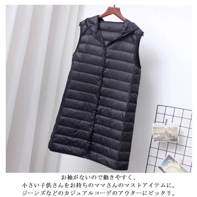 秋冬 レディース あったか ロング 暖かい インナーダウンベスト フード付き 軽量 アウター 母の日 ベスト レディース ダウンベスト vネック 防寒 インナーダウンベスト 黒 白 ダウンベスト