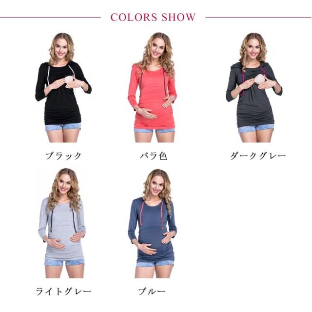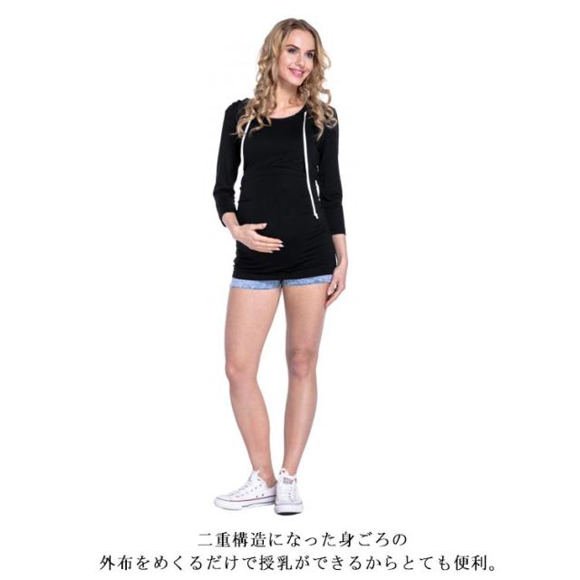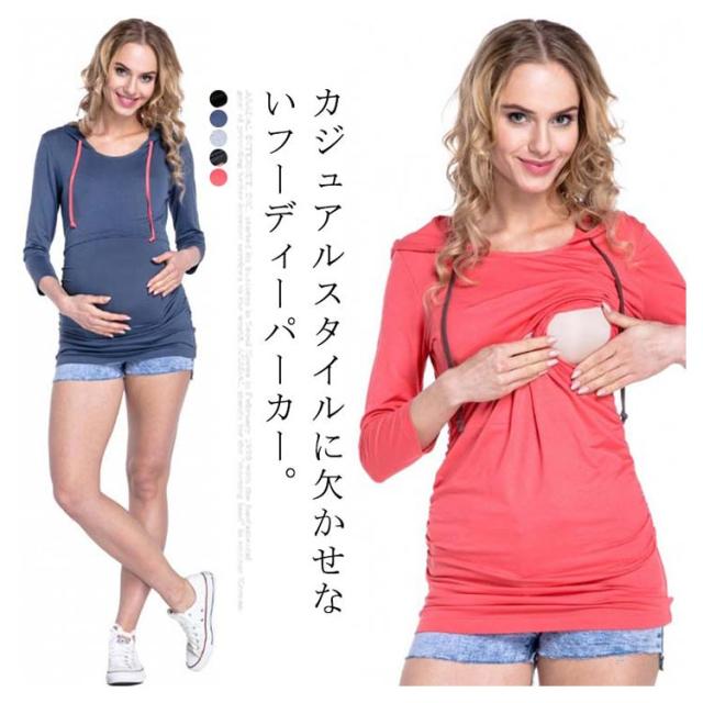パーカー 産前 送料無料授乳口付き 授乳服 プルオーバー 長袖 ロング スリム 産後 マタニティウェア 妊婦服 パーカー