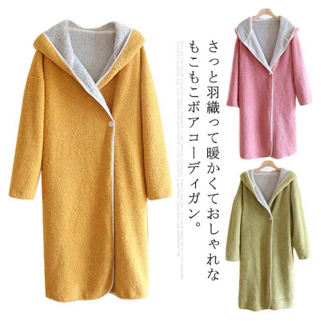 | さっと羽織って暖かくておしゃれなもこもこボアコーディガン。 まるで着る毛布のような暖かさ。おしゃれバイカラーフードデザインが部屋着だけでなく、ちょっとそこまでのお出かけも可愛い。 ビッグシルエットのガウンコートタイプでストレスフリーな着心地◎ 前開きボタン付きなのでさらっと羽織れて便利な一枚。 | |