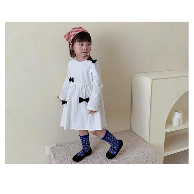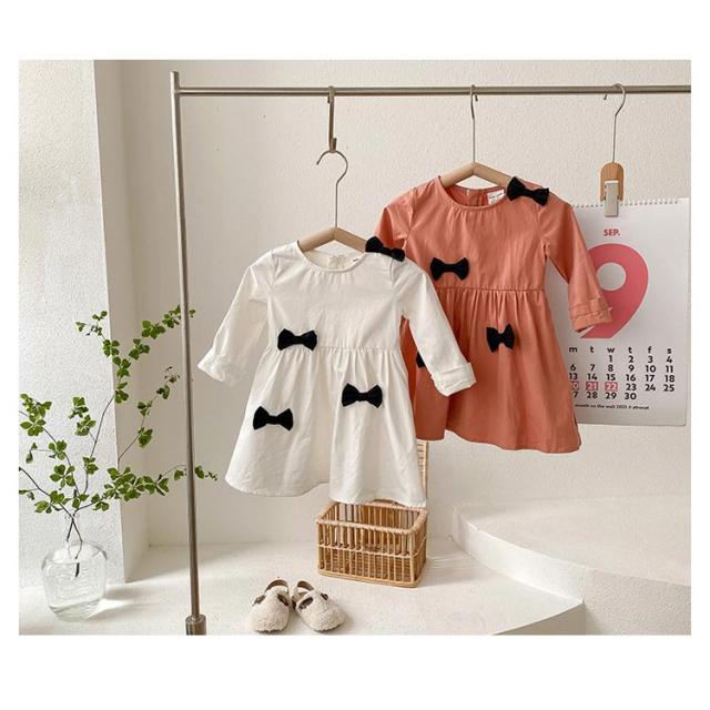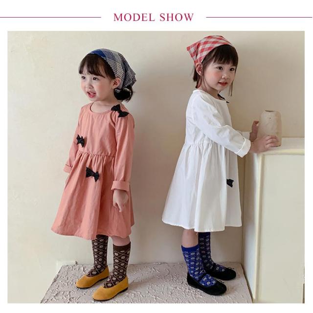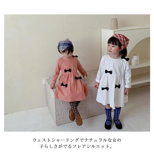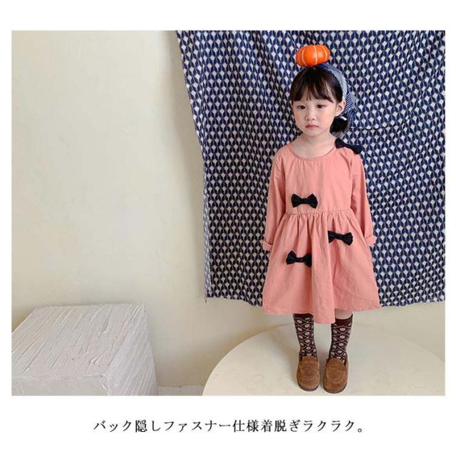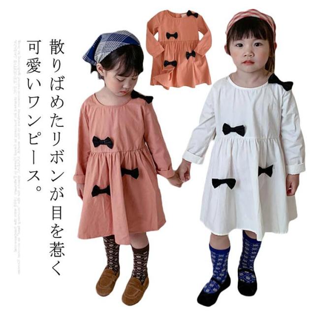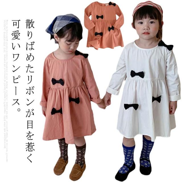 長袖 送料無料ワンピース 90 韓国 キッズ 女の子 卒園式 80 100 120 110 130cm 可愛い リボン フォーマル 入学式 送料無料ワンピース 子供服