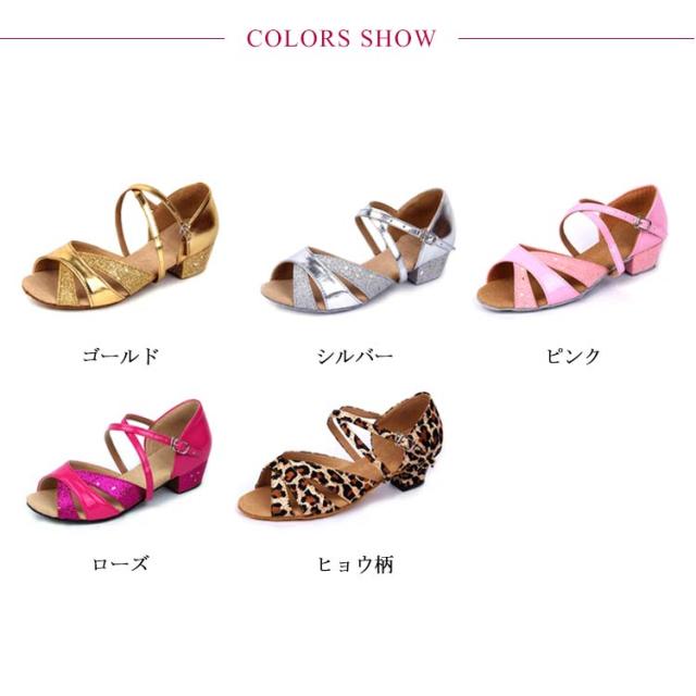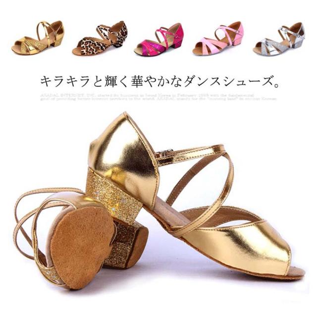 子供靴 ジャズダンス レディース ラテンダンス ダンスシューズ サンダル 室内用 練習靴 社交ダンス ローズ スエードソール ゴールド シルバー ピンク グリッター