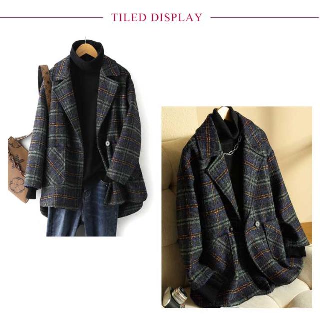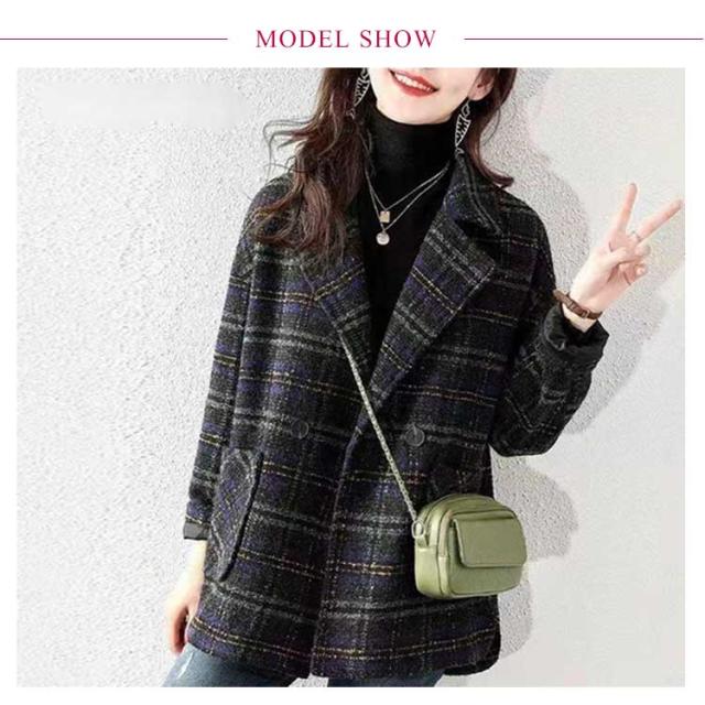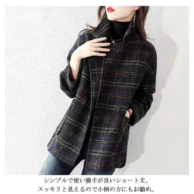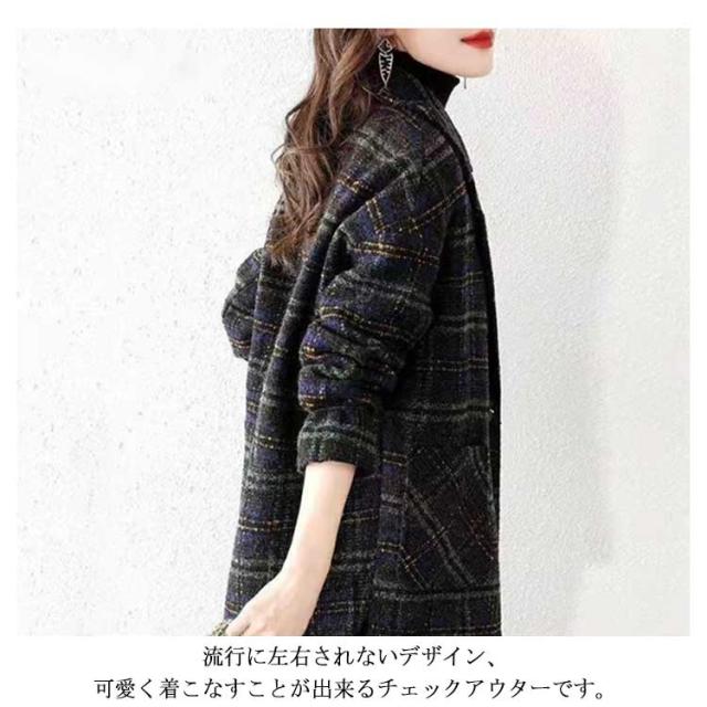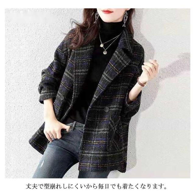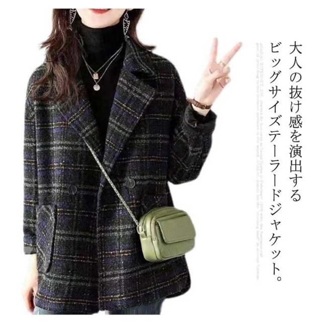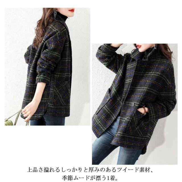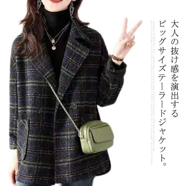 M-2XL ツイードコート テーラードジャケット 厚手 レディース 韓国 アウター グレンチェック柄 ドロップショルダー