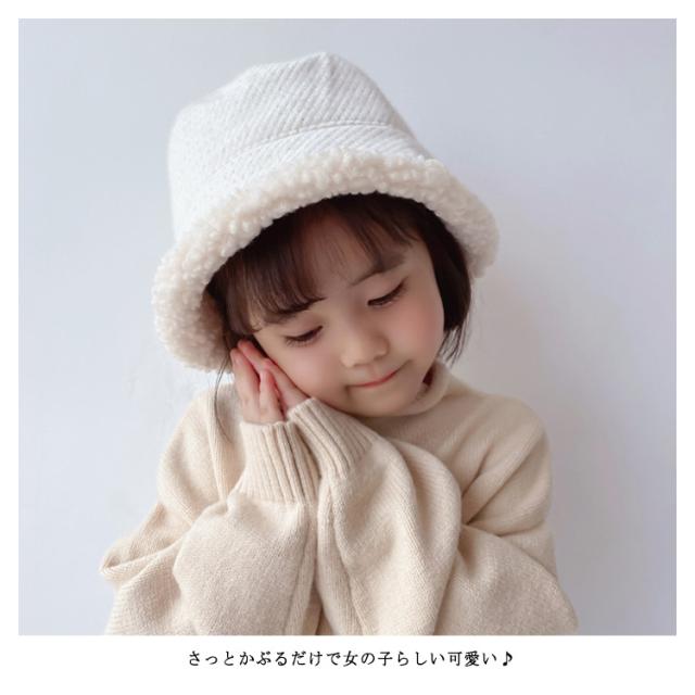 | ちらりと見えるもこもこボアが可愛いキッズバケットハット。 さっとかぶるだけで女の子らしい可愛い♪ 保温性ありながら通気性もよく、被り心地◎ トレンド感たっぷり、秋冬コーデを引き立ててくれるオシャレアィテム。 しっかり防寒できて寒い日のお出かけも安心! | |