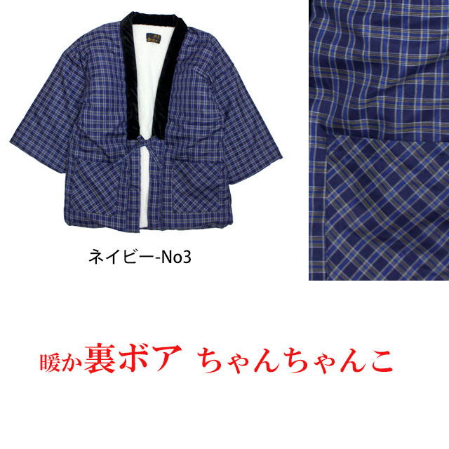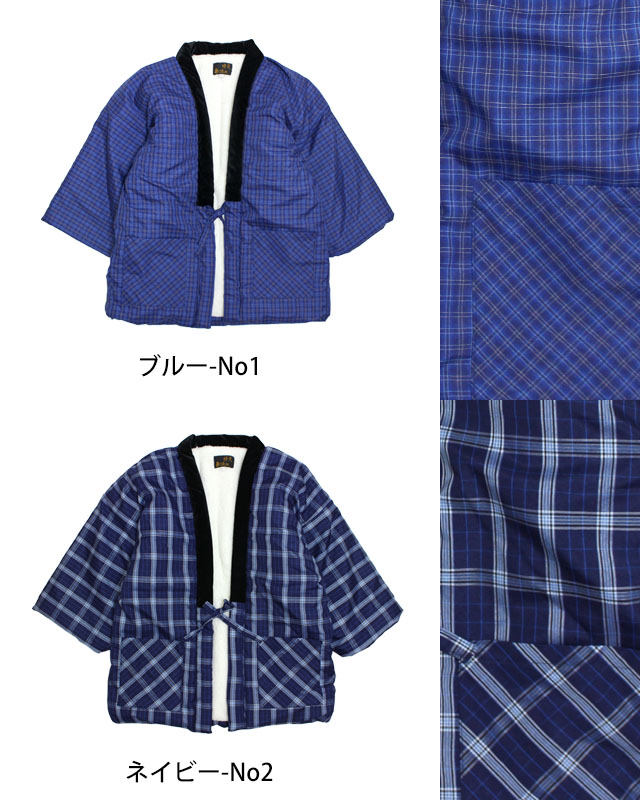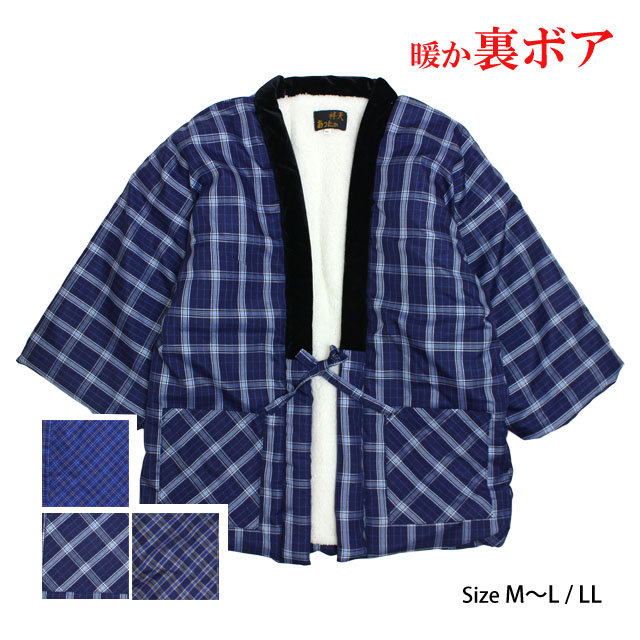 定番の格子柄 中綿入裏地ボア半纏