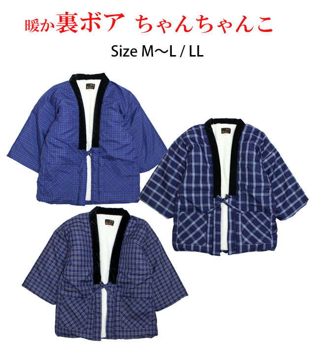 | はんてん メンズ 男性用 中綿 裏ボア どてら 格子柄 綿入れ 半てん 半纏 ちゃんちゃんこ 部屋着 ルームウェア M-L LL |