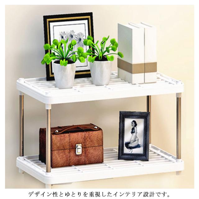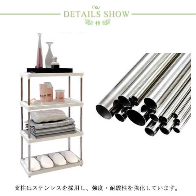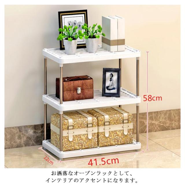 | 1層-4層・簡単組み立て! デザイン性とゆとりを重視したオープンラック! キッチンカウンターなどの下に置くと、毎日使うキッチンアイテムをいろんな方向から取り出すことができます。 効率よく行き来できるストレスフリーな家事動線にしてみませんか? お洒落なオープンラックとして、インテリアのアクセントになります。 デザイン性とゆとりを重視したインテリア設計です。 支柱はステンレスを採用し、強度・耐震性を強化しています。 工具なしで簡単に組み立てられます。 ランドリー収納としてだけでなく、食器棚横、冷蔵庫・シンク横、トイレ収納としても。 | |