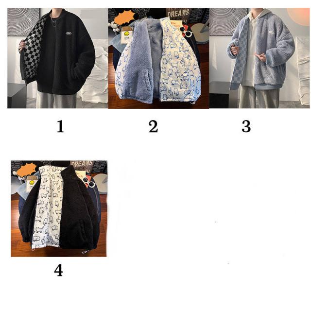 フリースジャケット ボアジャケット メンズ 両面着 ボア コート パーカー アウター ボアアウター ブルゾン もこもこ おしゃれ 防寒コート 冬 ゆったり 暖かい