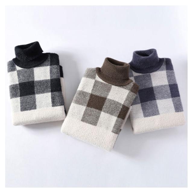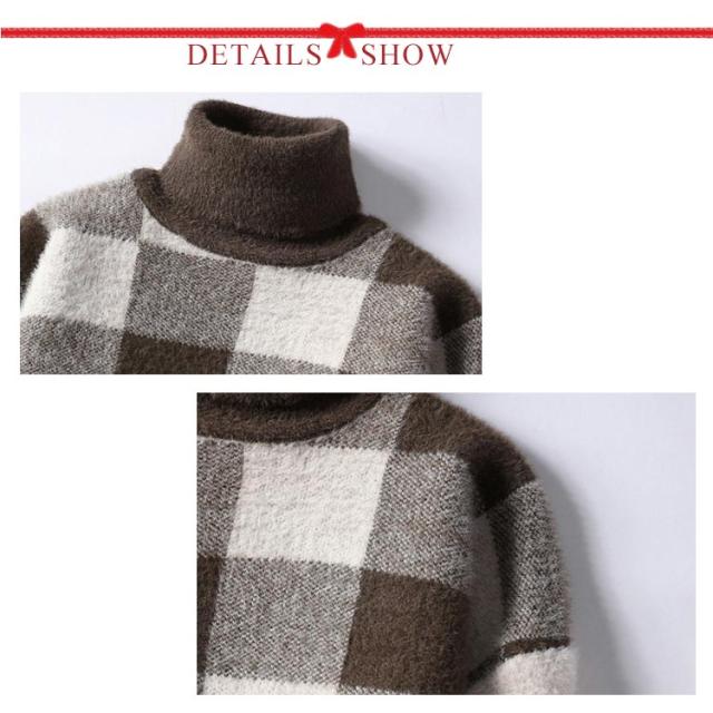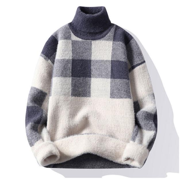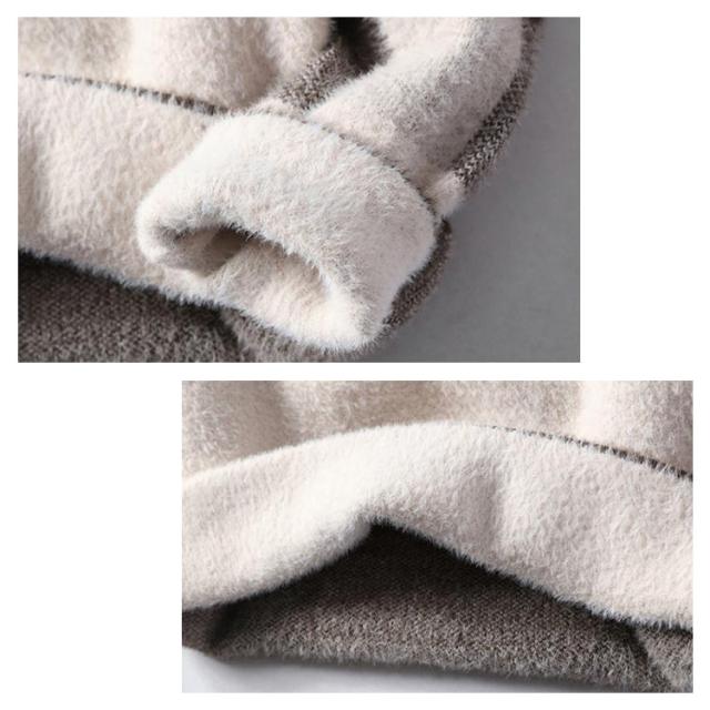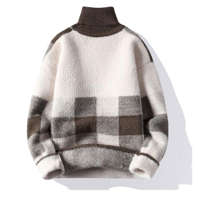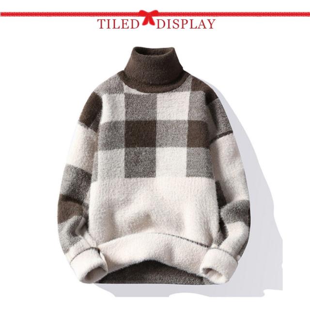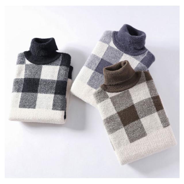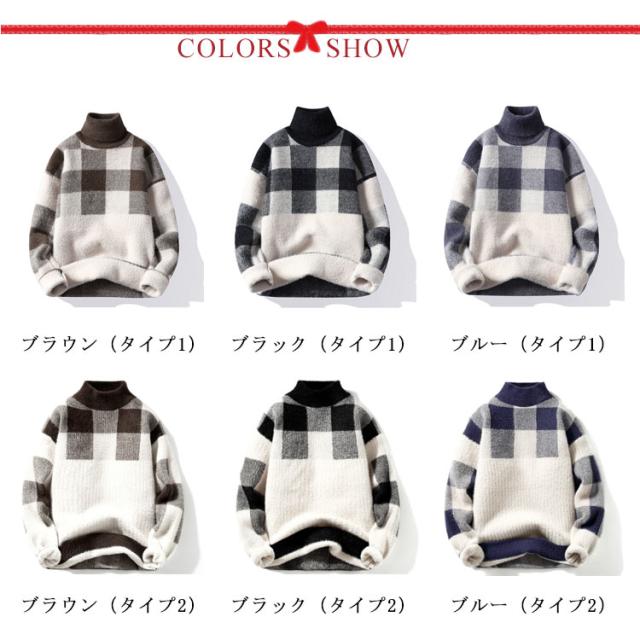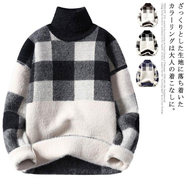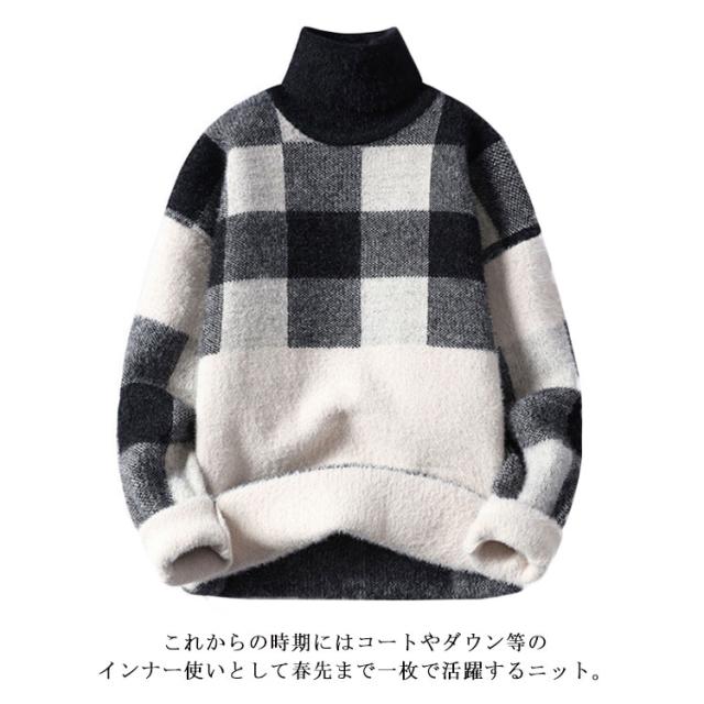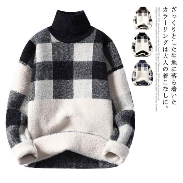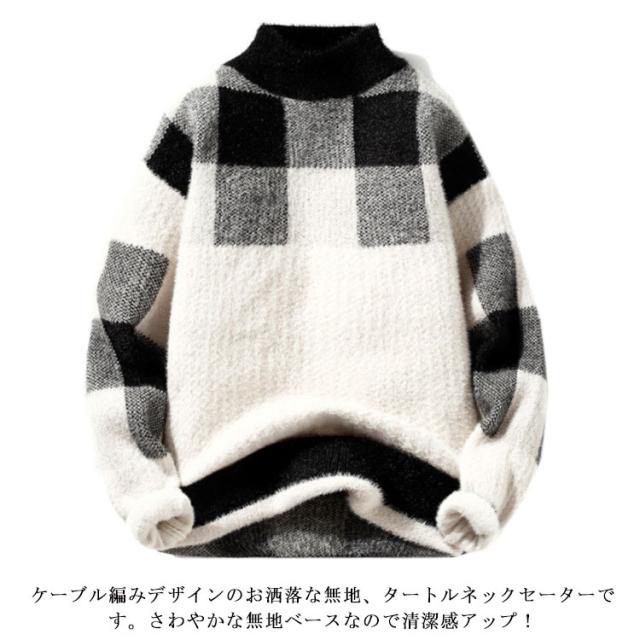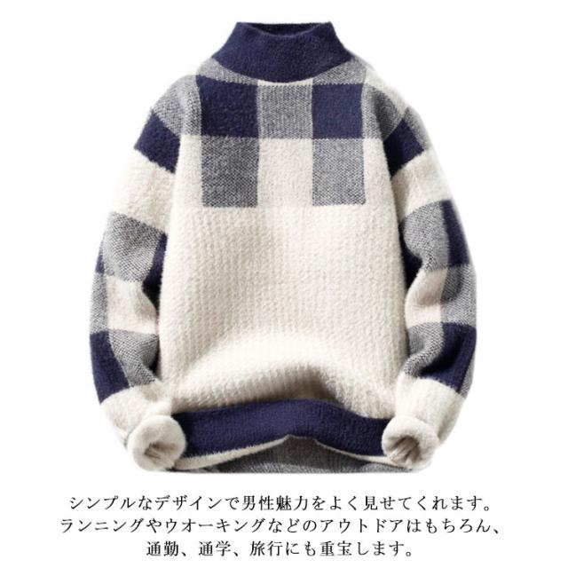 ニットセーター 柄 切り替え 体型カバー トップス ニット ハイネック タートルネック 長袖 セーター ゆったり トップス モックネック 柔らかい ふわふわ 厚手 メンズ