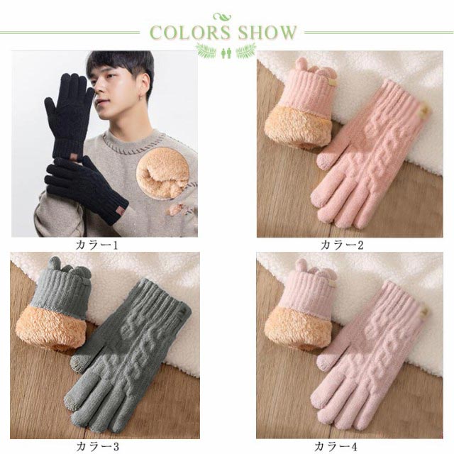| 全7色付けたままスマホが触れる! タッチパネル操作が反応抜群の高級手袋。 スマートフォンやタッチパネル端末を手袋をはめたままサクサク操作ができる。 伸縮性にとても優れ子供から大人まで使えるので、ギフトやお揃いで使うのもありかも。 カシミアのような風合い今まで味わった事のない驚きの肌触り。 カラーバリエーションも豊富なので、色違いで欲しくなる。 可愛くてお気に入り、コスパ、とても暖かい! 冬を楽しく乗り切ってくださいね☆ | |