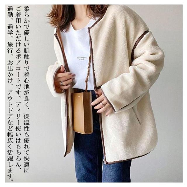 ボアブルゾン ボアコート ボアジャケット レディース ゆったり ノーカラー ドロップショルダー フリースジャケット ライト アウター カジュアル ショートコート もこもこ 防寒 ボアフリースカーディガン