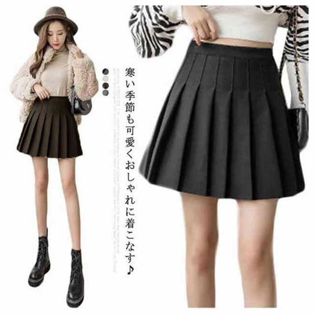 インナーパンツ付きスカート 秋 冬 厚手 プリーツ フレアミニスカート ショート丈 レディース 美脚 ミニスカート 膝上 制服 テニス 春秋冬 無地