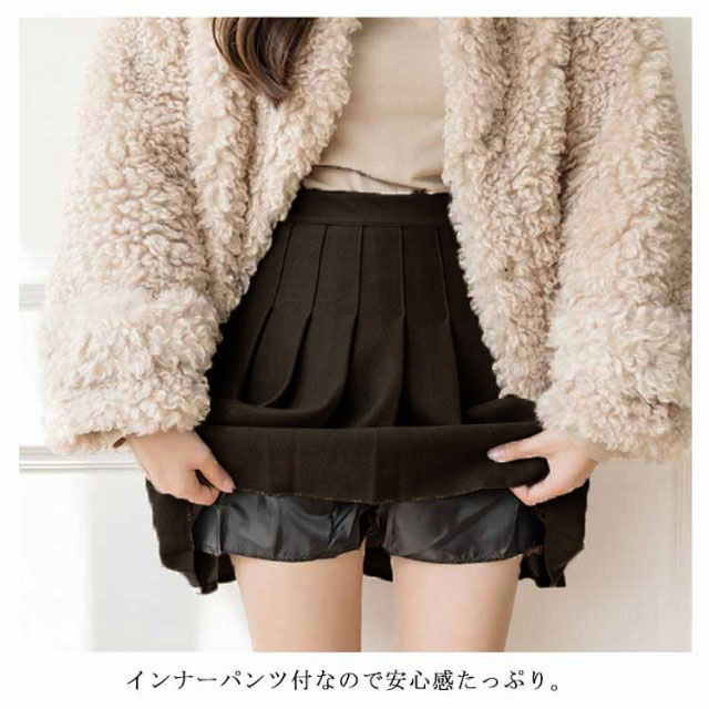 | 寒い季節も可愛くおしゃれに着こなす♪ 温もりのある起毛感のある素材、秋冬ムードにぴったり♪ 控えめのAラインシルエットが女性らしく可愛らしい印象。 ハイウエストですっきりとした腰ラインを演出し、トップスをINしておしゃれ決まり。 インナーパンツ付なので安心感たっぷり。 | |
