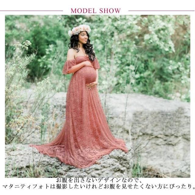 マタニティドレス マタニティフォト ウェディング ロングドレス 妊婦写真 オフショルダー レース ワンピース カラードレス フォーマル 記念写真 撮影 エレガント