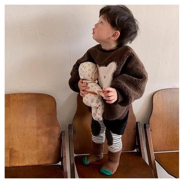 | 柔らかい素材を使用して、もこもこシルエットが可愛いくて暖かいトレーナーです。 裏がボア付きなので保温性があり、暖かさバツグン。厚着をしなくても寒い冬を乗り切れちゃう。 袖口と裾がリブ仕様でスキッと引き締めています。ゆったりしたシルエットで着ぶくれ感が無く体型カバーも叶えるこども服です。 可愛らしさと機能性を兼ね備え、お子様の誕生日、新年などに喜ばれるプレゼントとしてもお勧めます。 | |