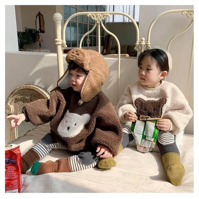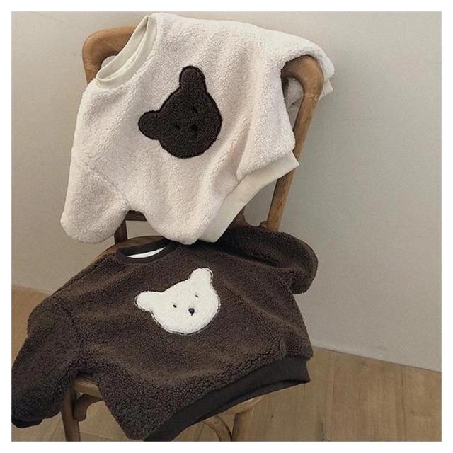 男の子 キッズ 裏起毛 トレーナー トップス ベビー服 パーカー トレーナー トップス 女の子 シンプル プルーオーバー 子供服 裏起毛 クルーネック もこもこ ユニセックス 無地 暖かい 白 秋冬 ボア 80 90 100 くま柄