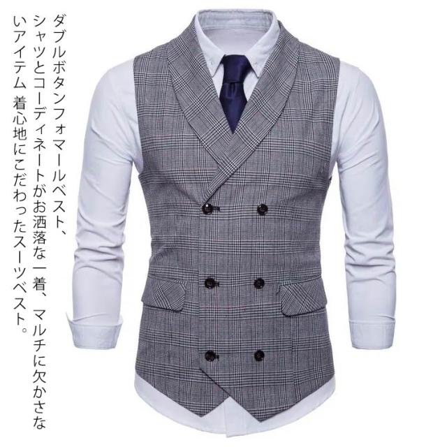 | ダブルボタンフォマールベスト、シャツとコーディネートがお洒落な一着、マルチに欠かさないアイテム 着心地にこだわったスーツベスト。 コットンとポリエステルの混紡素材で、柔らかい肌触り?感ができて優しいフィット度が楽しみです。 後ろは尾錠付き、自分に合うウエストを調節可能。 通気性、快適性に優れで春夏秋冬も着用可能。 フォーマルにはもちろん、カジュアルなシャツと合わせるとコーディネイトがぐっと引き締まるのでおすすめです。 ビジネスの以外、日常に通勤、パーティーなど、他には結婚式、二次会、卒業式などのセレモニーにも使えます。 | |