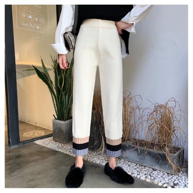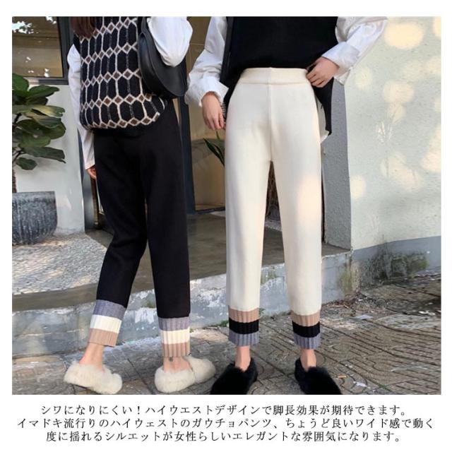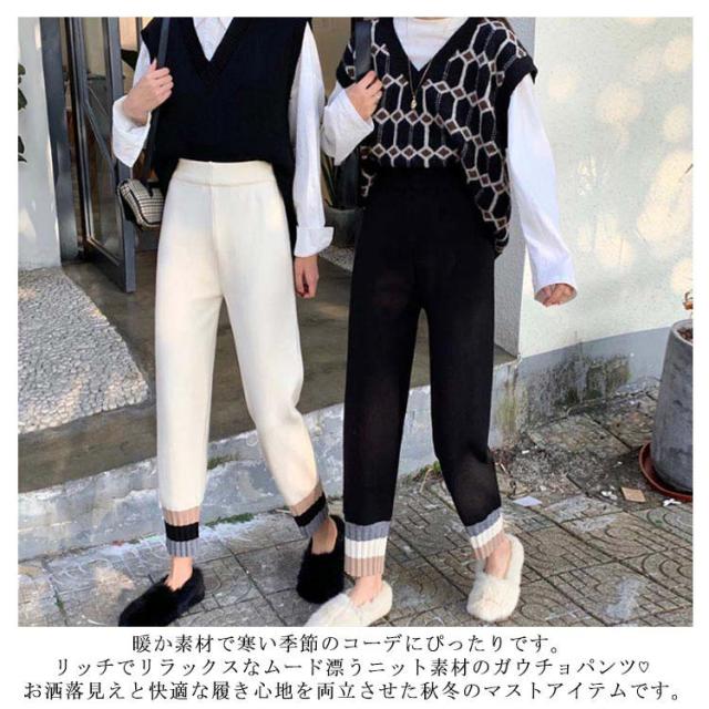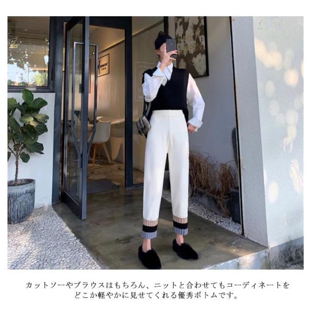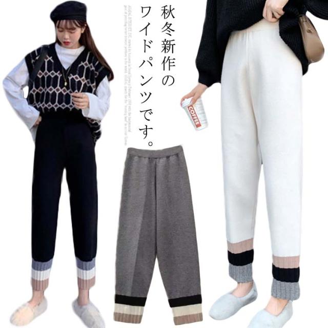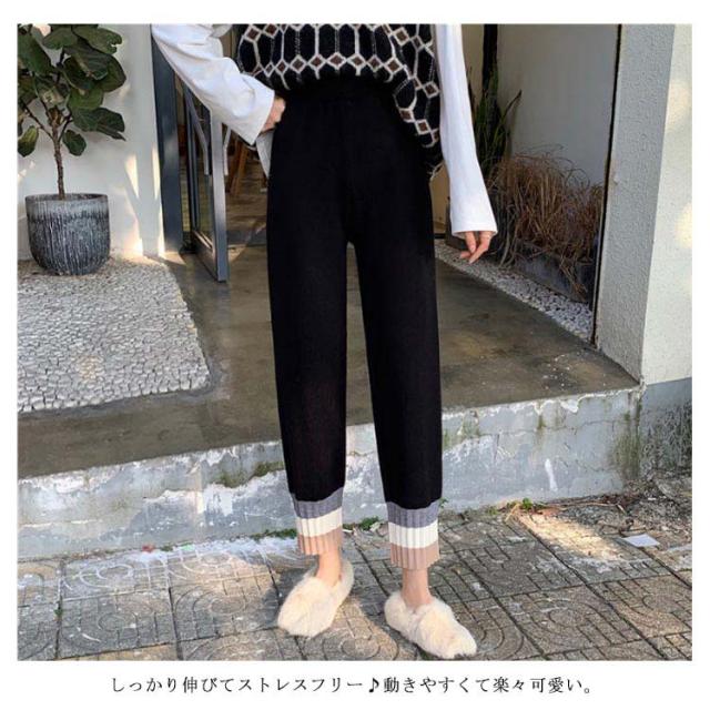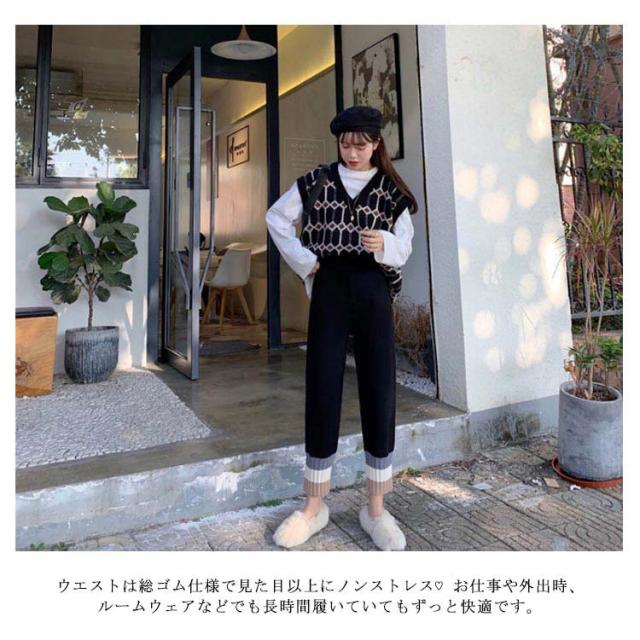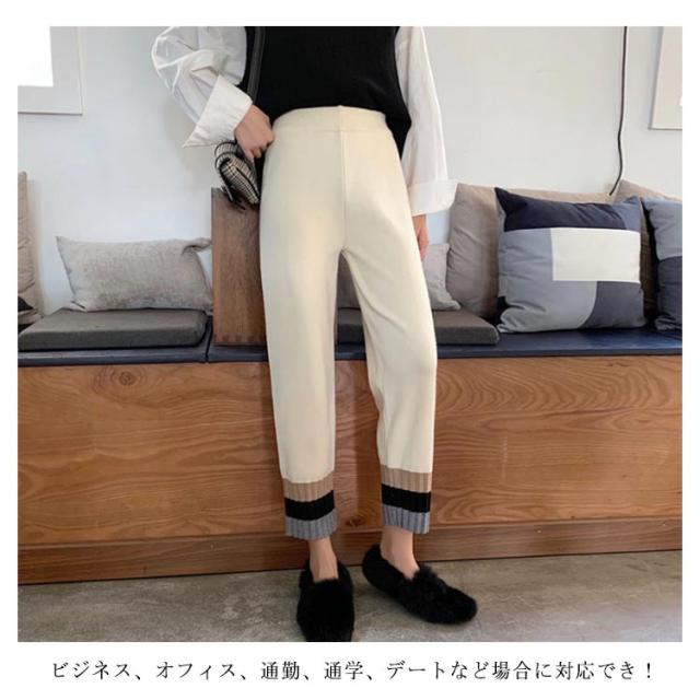 ストレートパンツ ニットパンツ イージーパンツ テーパードパンツ ジョガー 秋冬 カジュアル リブニット 通勤 シンプル リラックス アンクルパンツ ウエストゴム 着?せ レディース