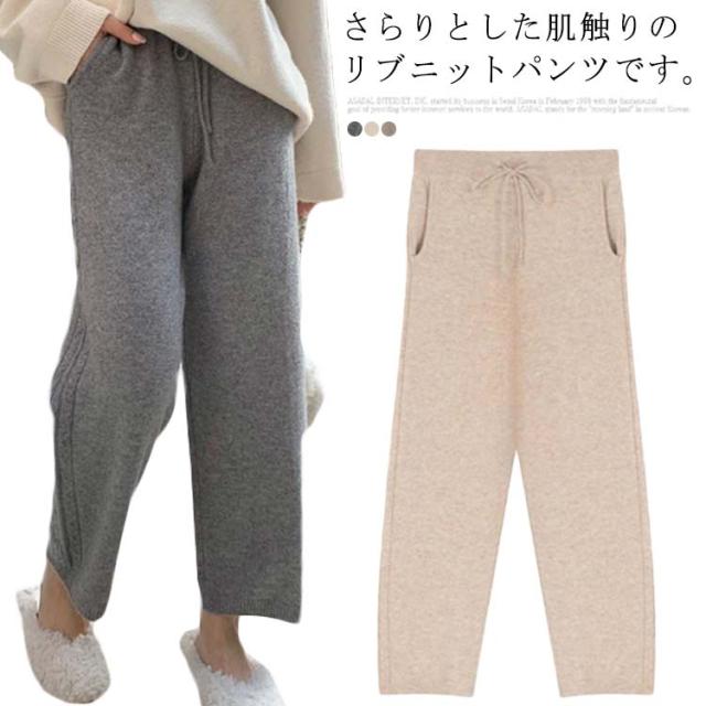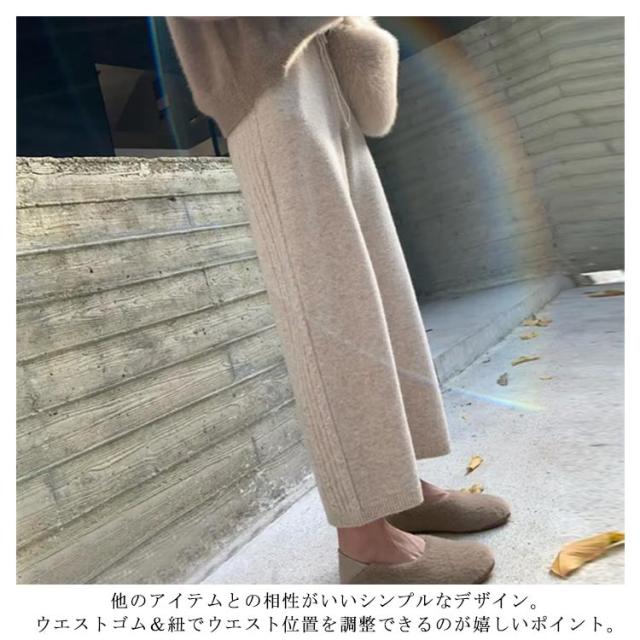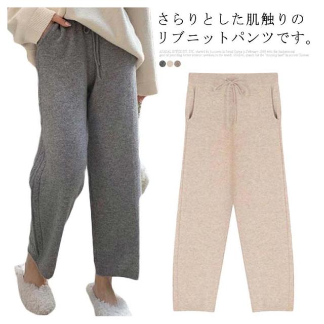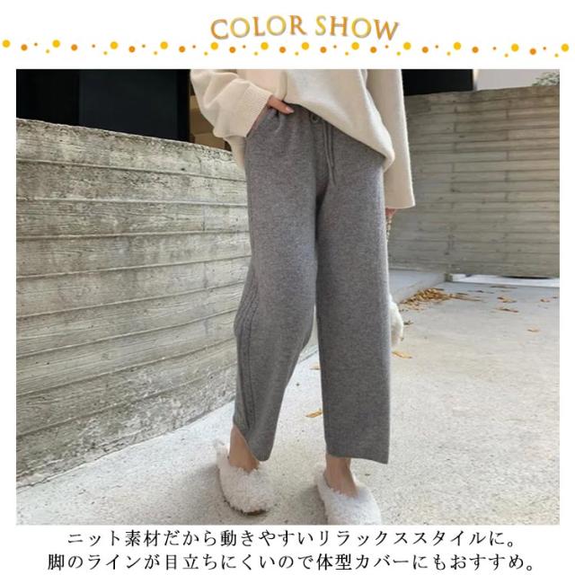 パンツ ワイドパンツ ニットパンツ ニットワイドパンツ ボトムス ケーブル編み レディース ガウチョパンツ ウエストゴム きれいめ ロングパンツ ゆったり 春 秋 パンツ