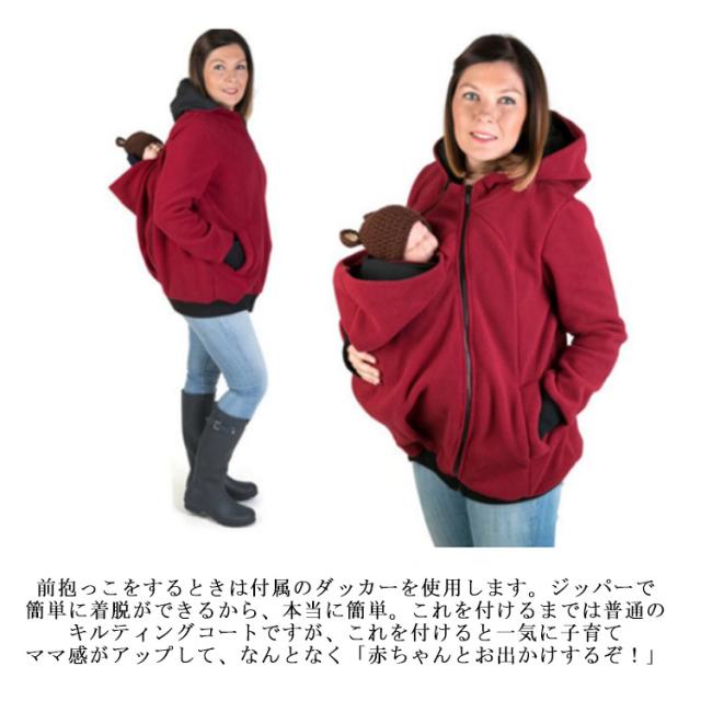 | マタニティコートは、単独で着用することができます、子供を置くことができる、柔らかいベビーキャリア、赤ちゃんのポーチはジッパーでこのコートに接続されています。 ママコートは産前から産後、またベビー期を卒業した後まで、長く使えて重宝するママコートです。 前抱っこをするときは付属のダッカーを使用します。ジッパーで簡単に着脱ができるから、本当に簡単。これを付けるまでは普通のキルティングコートですが、これを付けると一気に子育てママ感がアップして、なんとなく「赤ちゃんとお出かけするぞ!」 カジュアルにピッタリのシルエットと、着心地の良さでレイヤードコーデにぴったり。荷物の多くなる冬でも、かるかわコートなら気持ちも軽やかで楽しくお出かけ。 | |