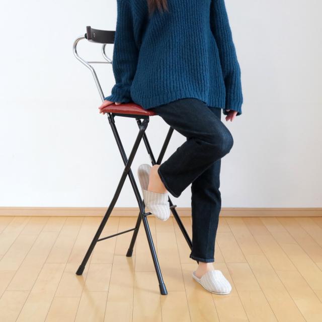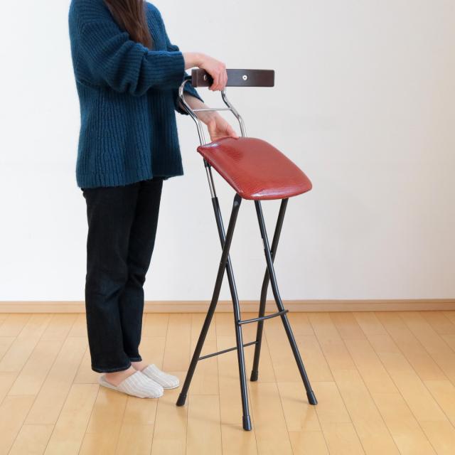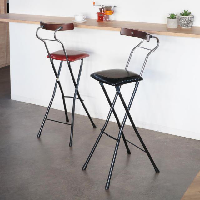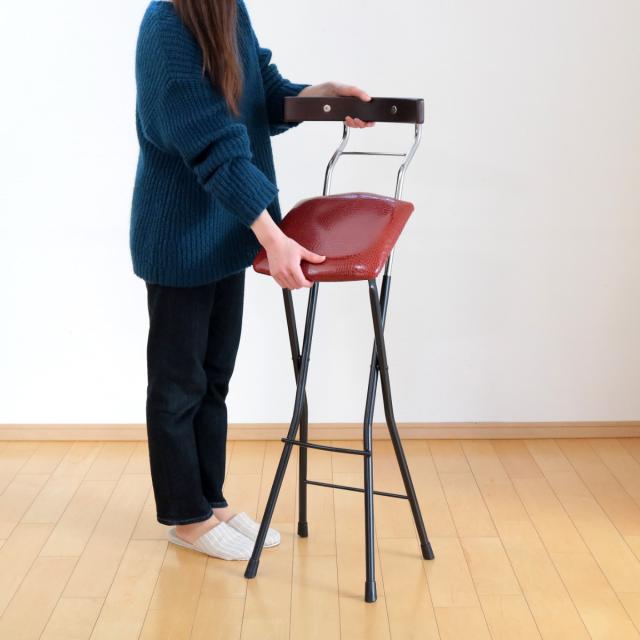 折りたたみ椅子 座面高73.5cm ハイタイプ 背もたれ付 レザー調 ロイドチェア ( カウンターチェア バーチェア 椅子 ハイチェア 折りたたみ 高め 日本製 カウンター キッチン バー )