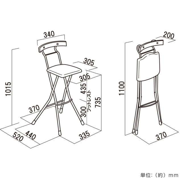| サイズ | 約 幅37×奥行52×高さ101.5(cm) 座面高:約 73.5(cm) 折りたたみ時:約 幅37×奥行20×高さ113(cm) |