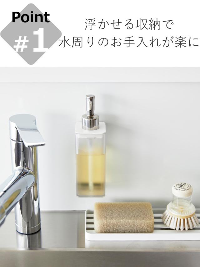 水まわりのお手入れを楽にしてくれる浮かせるディスペンサーです。シンクや洗面台にボトルが直接触れないので、ぬめりにくく清潔にお使いいただけます。