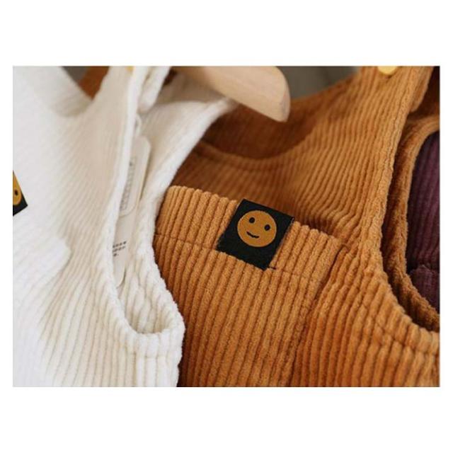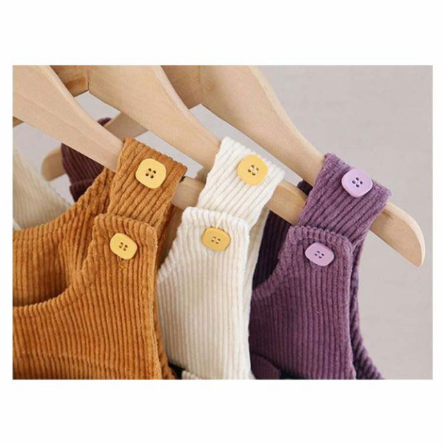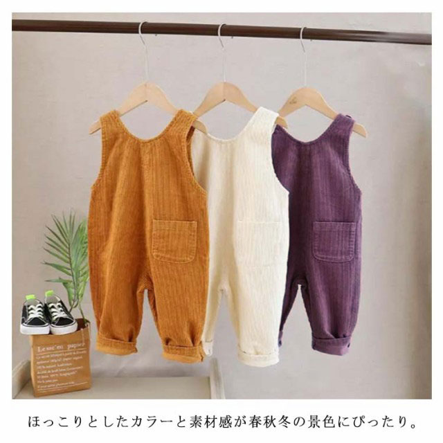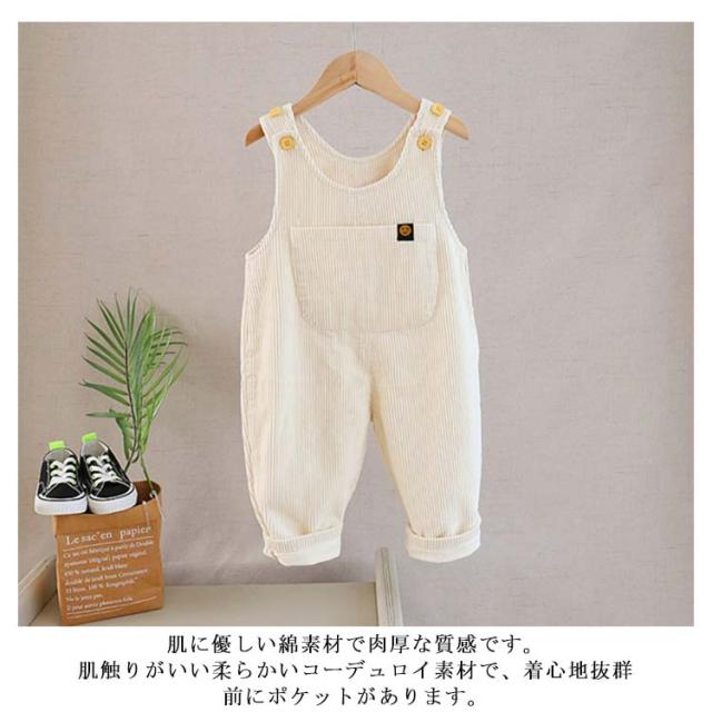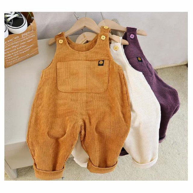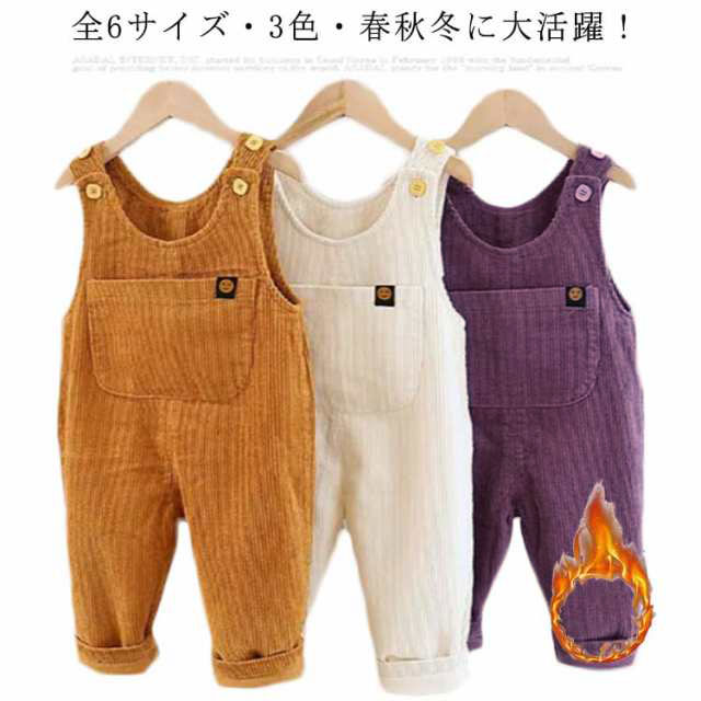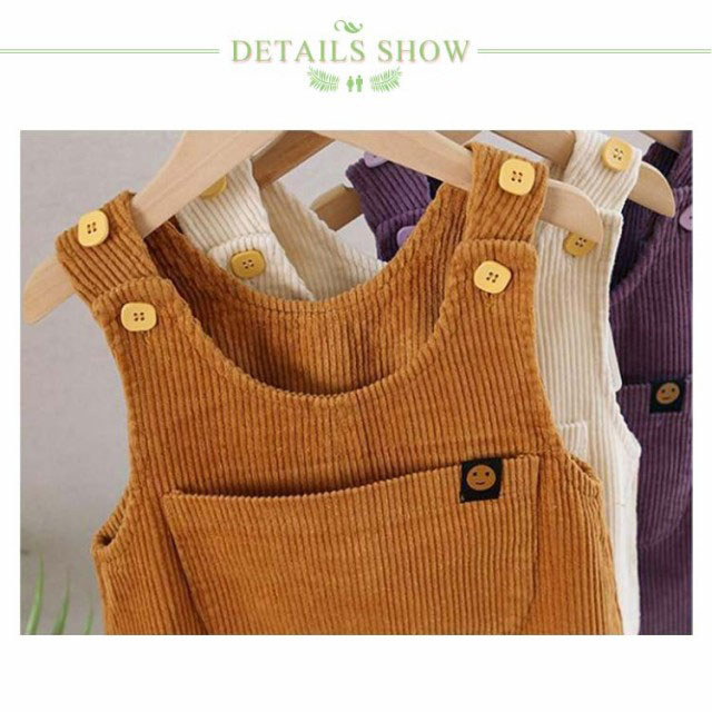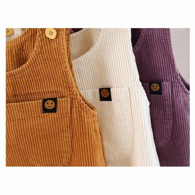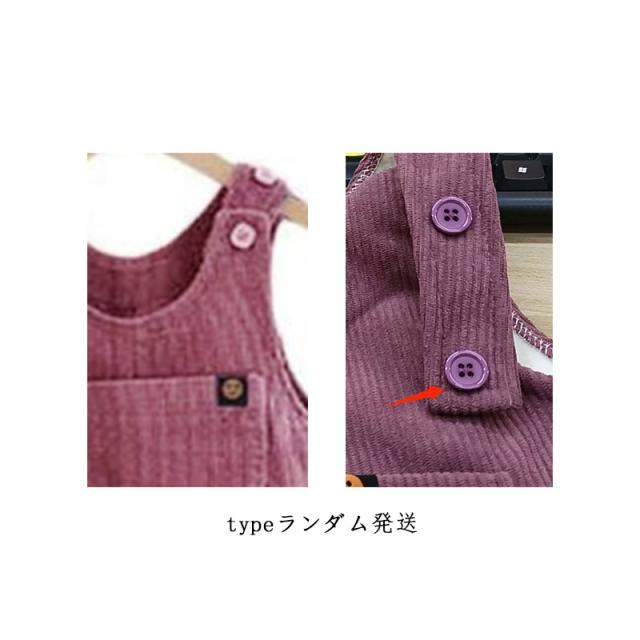 | 全6サイズ・3色・春秋冬に大活躍! ほっこりとしたカラーと素材感が春秋冬の景色にぴったり。 女の子男の子兼用のシンプルデザインでコーディネートしやすい ナチュラルな雰囲気のボタンは、長さ調整可能な2つボタン付き 肌に優しい綿素材で肉厚な質感です。 肌触りがいい柔らかいコーデュロイ素材で、着心地抜群 前にポケットがあります。 | |