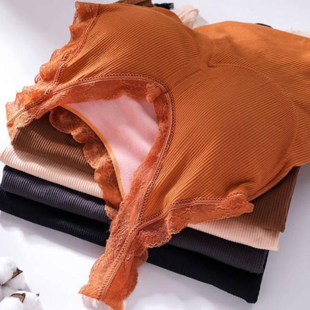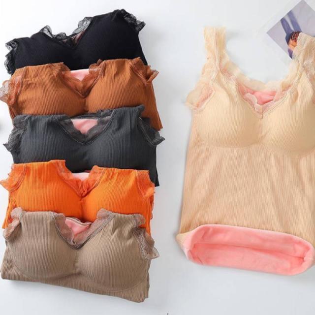 裏起毛 キャミソール カップ付き レース インナー レディース カップ付きインナー ブラトップ ブラック グレー ベージュ ブラウン レッド S M L XL 2XL 送料無料