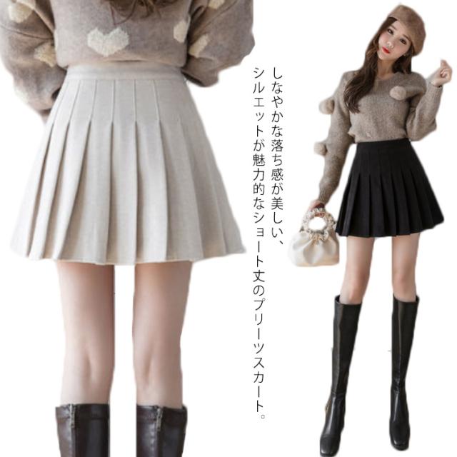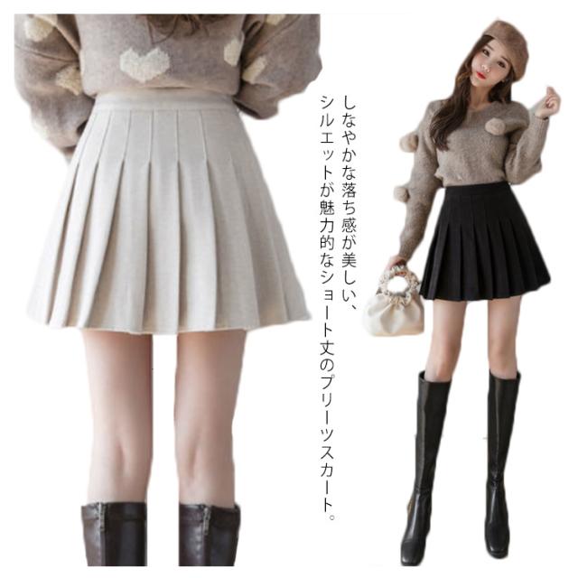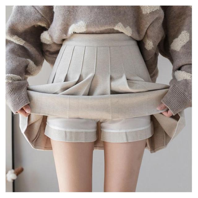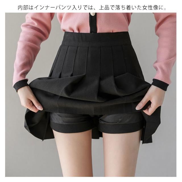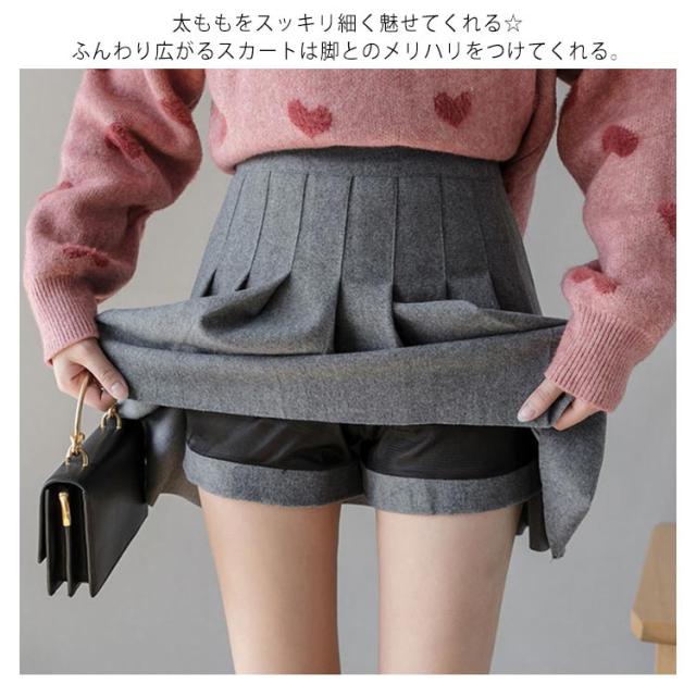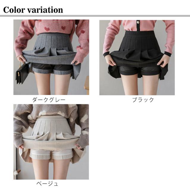プリーツスカート レディース ウール混 スカート ミニスカート ショートパンツ レイヤード キュロットスカート 膝上 ハイウエスト インナーパンツ付 無地 フレアスカート Aライン スカート レイヤード風 可愛い 秋冬 ボトムス 伸縮性 女性