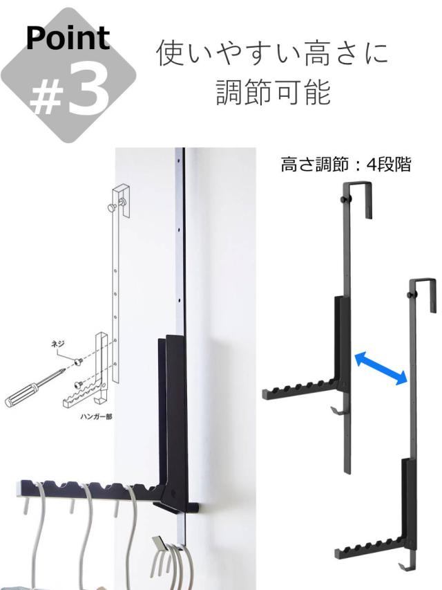 身長やドアの高さに合わせてハンガーの位置を決められる
