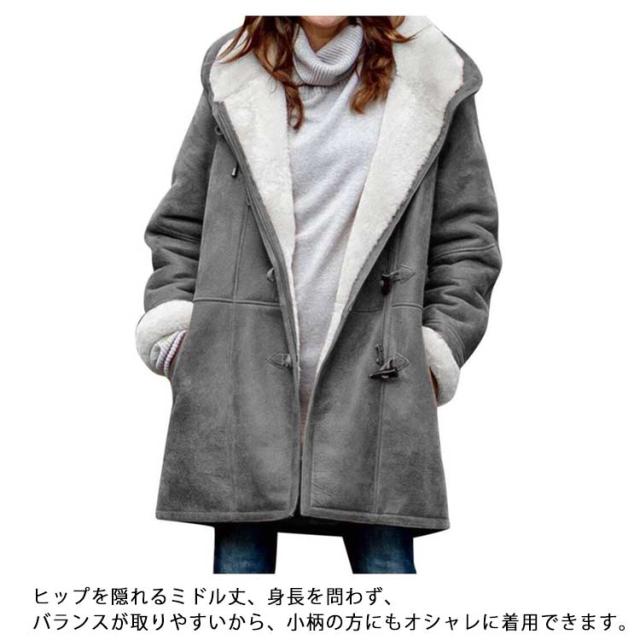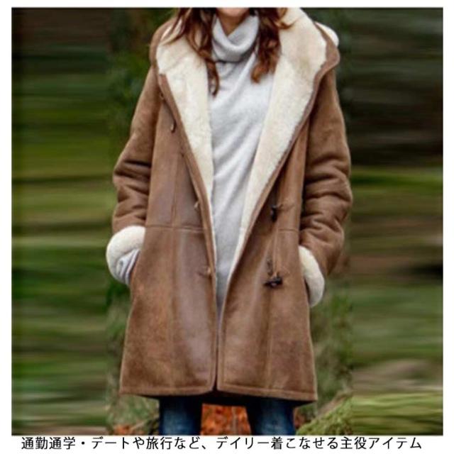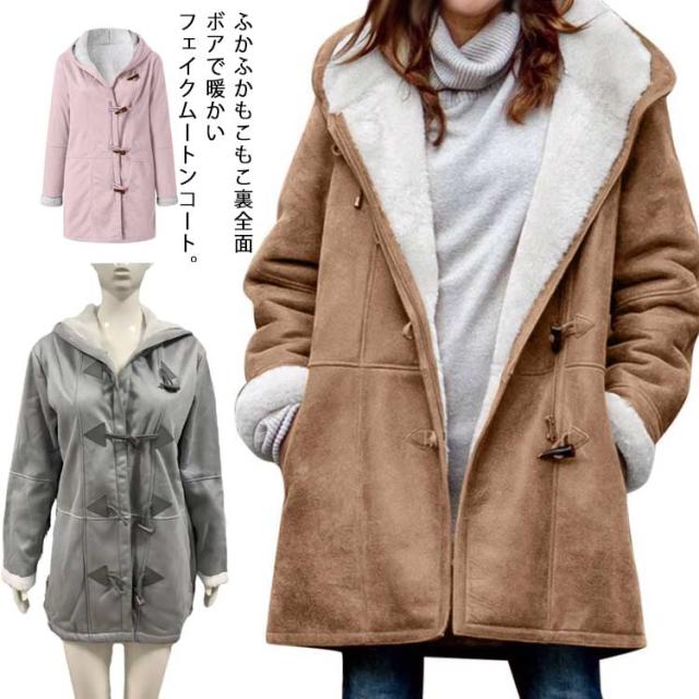 30代 パーカー ムートンコート ダッフルコート S-5XL アウター ミドル丈 フーディー 裏起毛 コート レディース ジャケット 防寒 体型カバー 秋冬 40代 50代 裏ボア