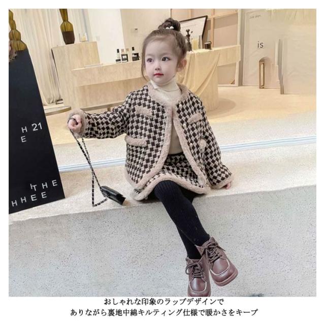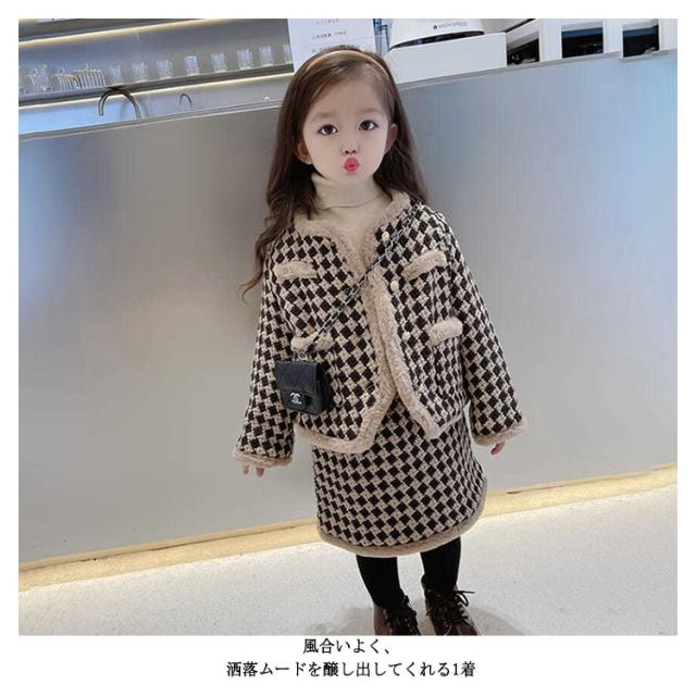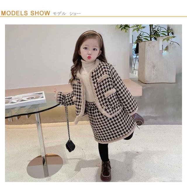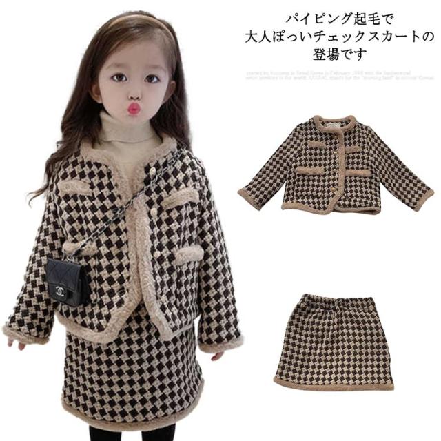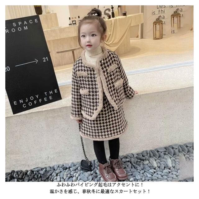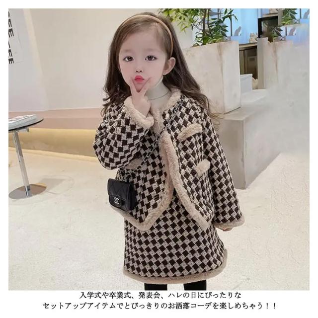 キッズ スーツ 入学式 女の子 起毛 大人ぽっい フォーマルスーツ 韓国子供服 チェック柄 スカート セットアップ ジャケット 長袖 ブラウス ノーカラー 春 秋冬 卒業式 発表会 結婚式 七五三 90 100 110 120 130 140