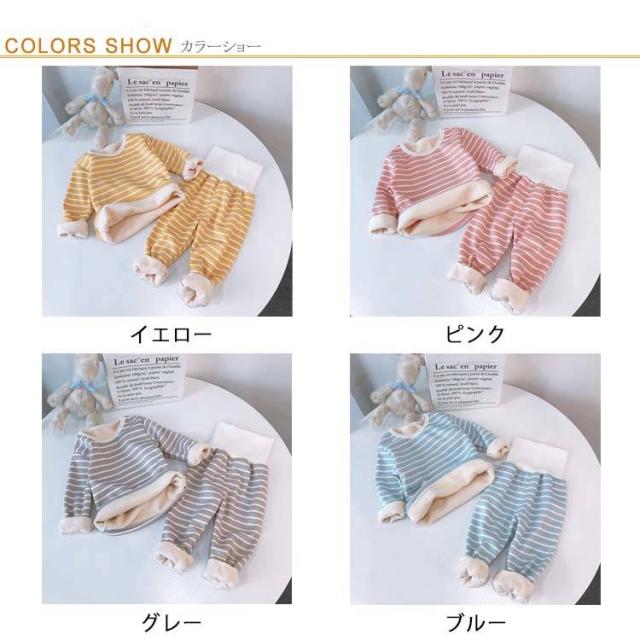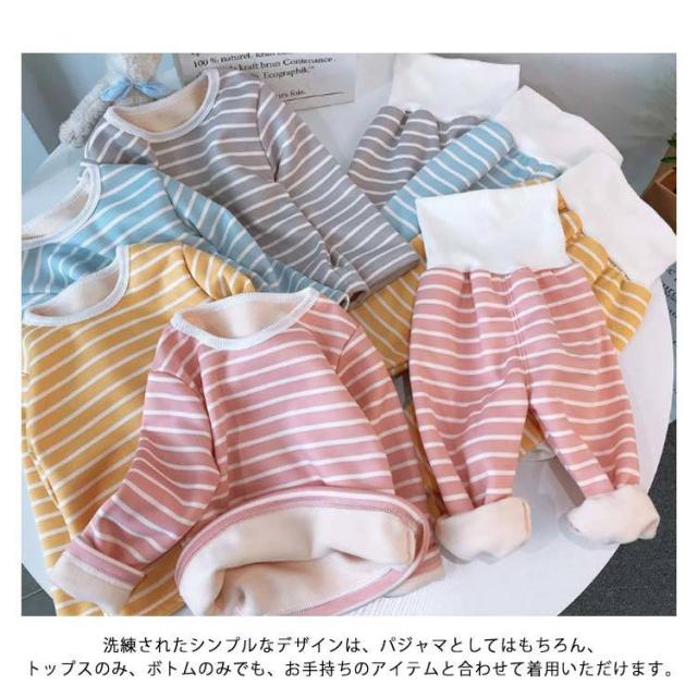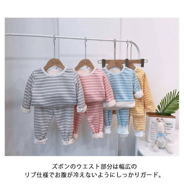 ルームウエア モコモコ 秋冬 ベビー 長袖 80 女の子 上下セット 裏ボア 部屋着 裏起毛 春 【送料無料】パジャマ 子供服 男の子 ボーダー 保育園 長ズボン キッズ 通園 防寒 暖かい 寝巻き かわいい 長袖 90 100 腹巻