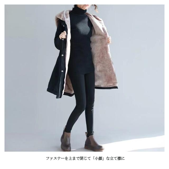 | ボアに包まれて暖かいロングコート。 ファスナーを上まで閉じて「小顔」な立て襟に。 デザインのこだわりだけではなく、裏地にふんわりとしたあったかボアを使用することで抜群の保温性と心地よい肌ざわりを実現しました。 見頃が全面裏ボアふわふわの厚手ボアで保温性も抜群です。毛布に包まれているような極上の暖かさ! 気になる下半身もしっかりとカバーしてくれるロング丈も嬉しいポイント。 お出かけも部屋着もでき、様々な場合にも適応します。 | |