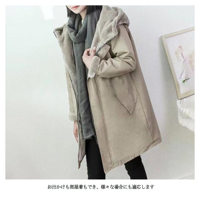 長袖 ボアコート もこもこ コート ムートンコート アウター ロングコート 裏起毛 ふわふわ 裏ボア モッズコート フード付き フェイクファー 防寒 秋 中綿 レディース 冬 あったか 暖かい 防寒着 ミリタリー きれいめ 大きいサイズ 大人 ジャケット