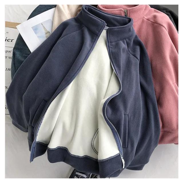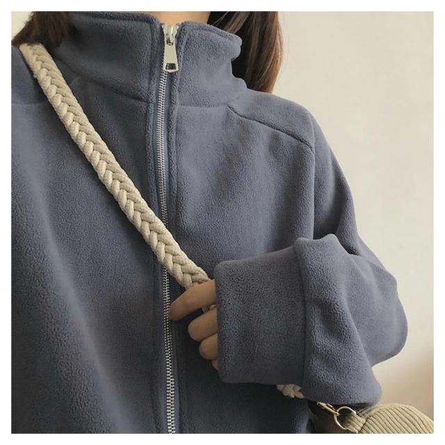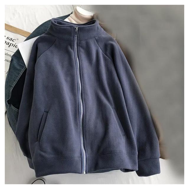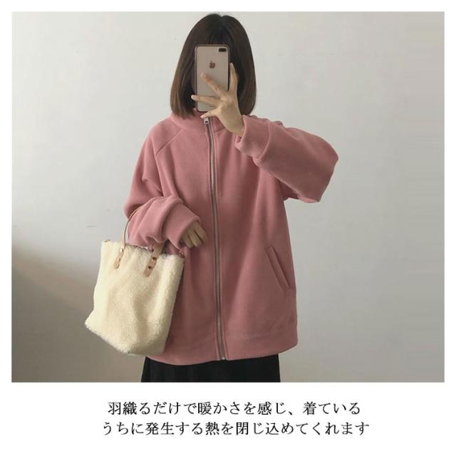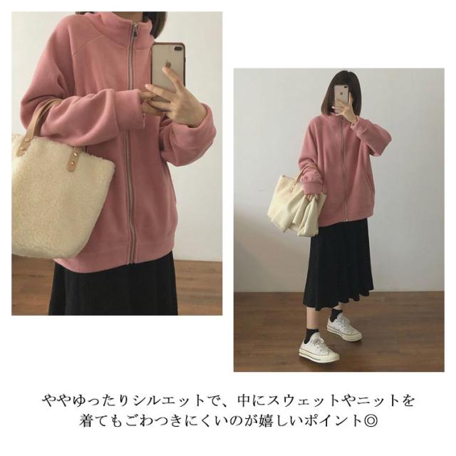 ボアフリースパーカー レディース ミドル丈 前開き 無地 立ち襟 裏起毛 パーカー アウター フルジップ 細身 スリム ゆったり 厚手 春 秋 冬 大人 20代 30代 40代 50代 暖かい M/L/LL/3L ネイビー 紺