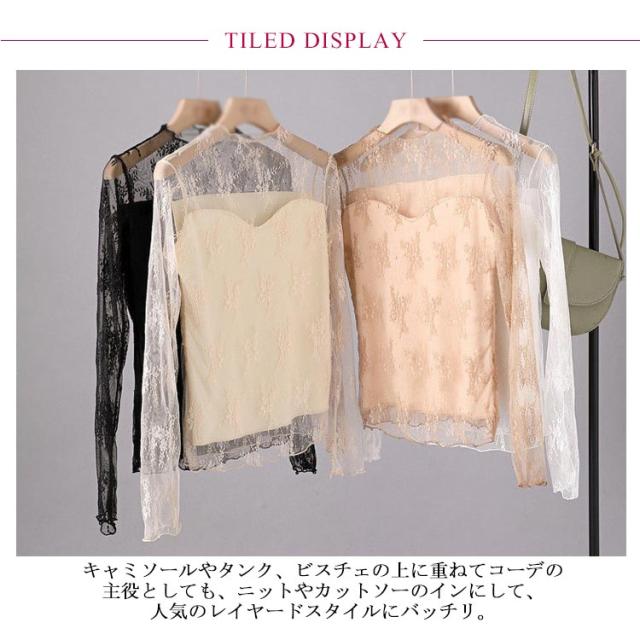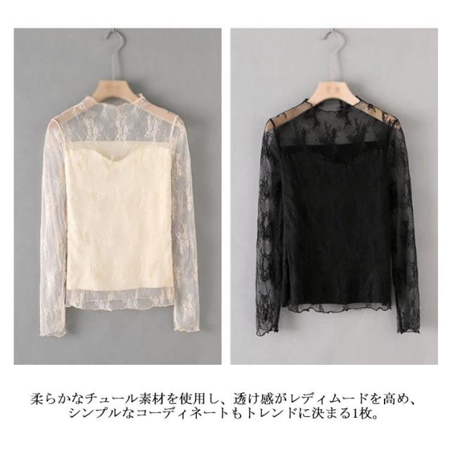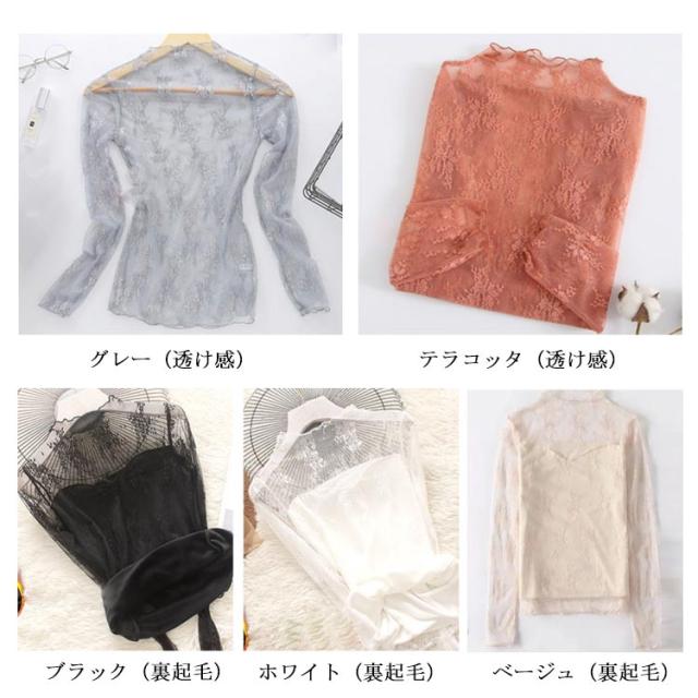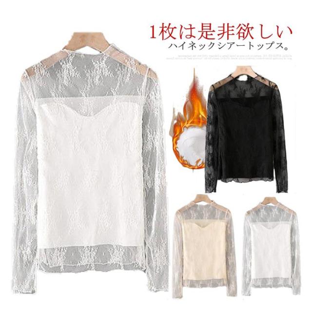送料無料 裏起毛&薄手 シースルー トップス 長袖 ブラウス 総レース 透け感 シアートップス インナー ハイネック セクシー 春夏秋冬