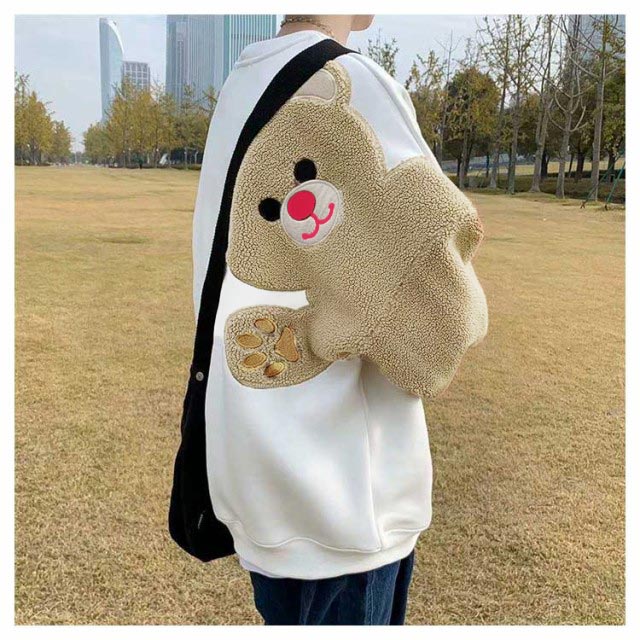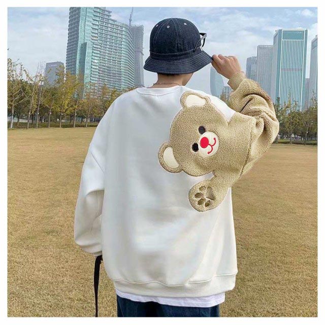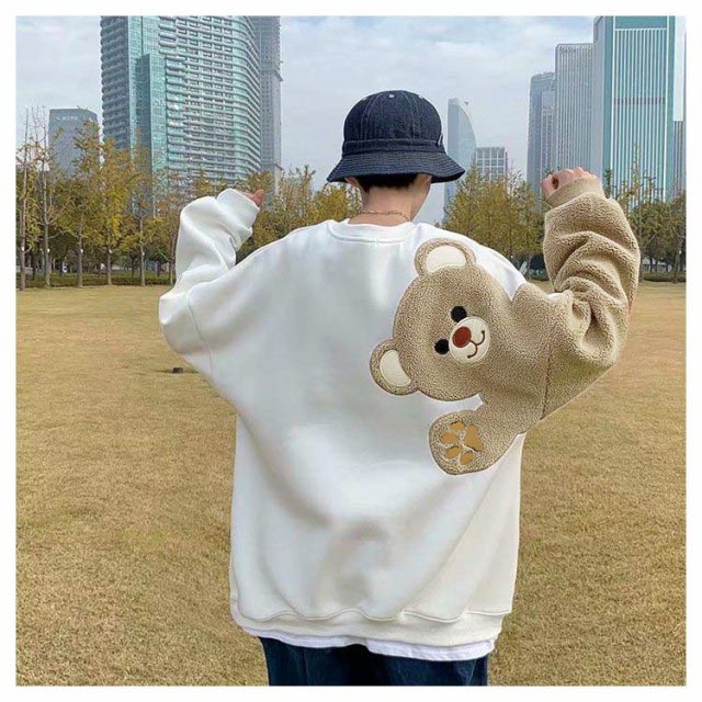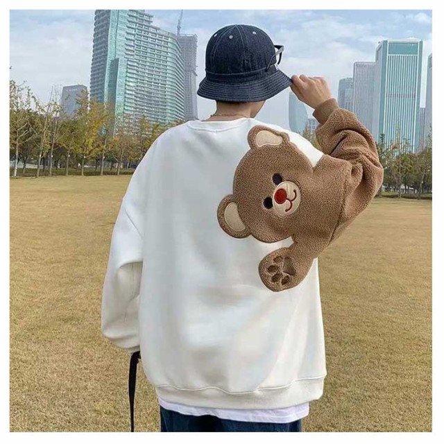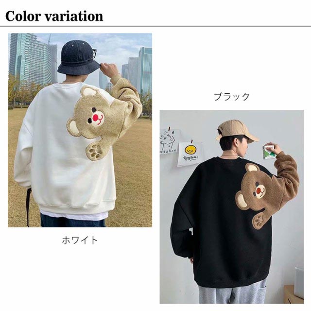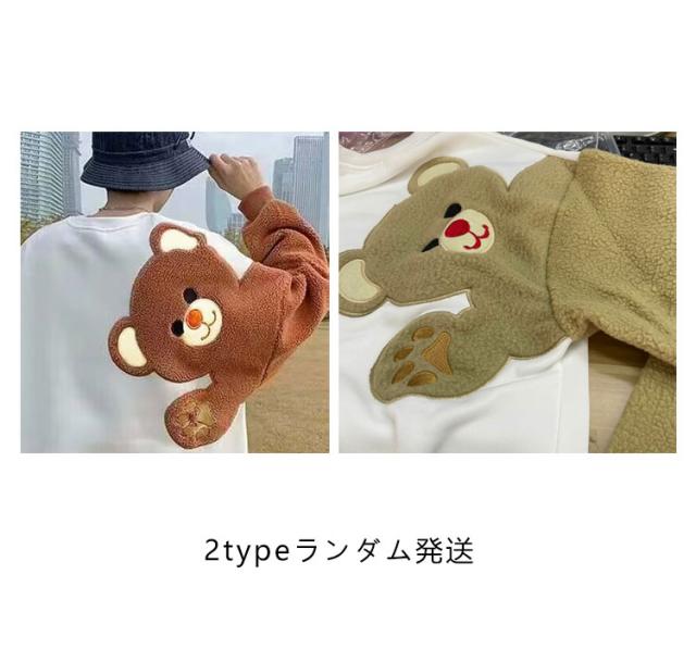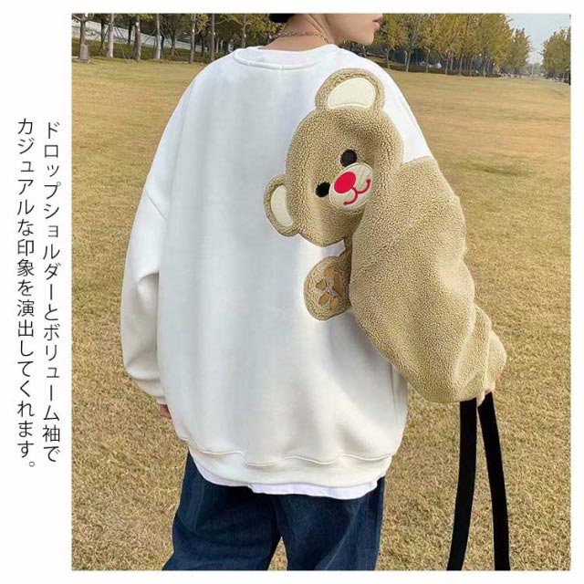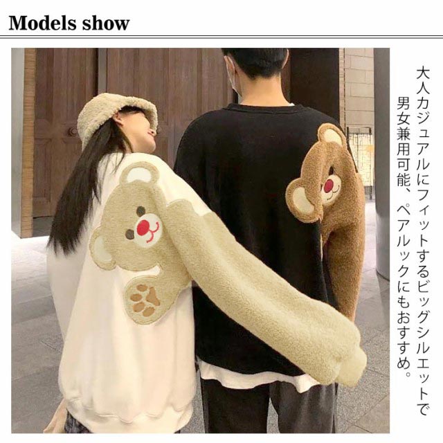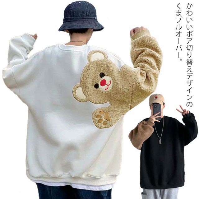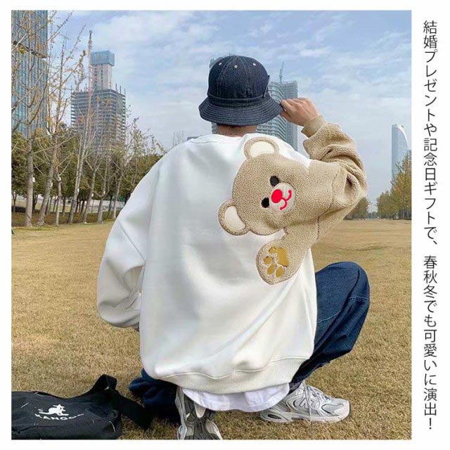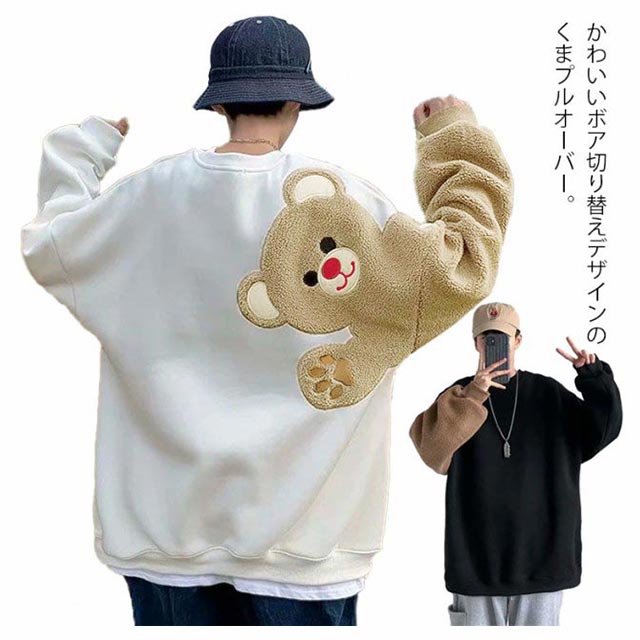 | かわいいボア切り替えデザインのくまプルオーバー。 裏側にはモコモコ裏起毛があり、柔らかく暖かい、触り心地がよいです。 大人カジュアルにフィットするビッグシルエットで男女兼用可能、ペアルックにもおすすめ。 ドロップショルダーとボリューム袖でカジュアルな印象を演出してくれます。 結婚プレゼントや記念日ギフトで、春秋冬でも可愛いに演出! | |