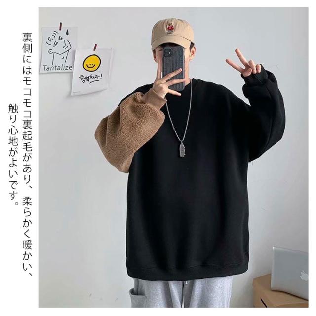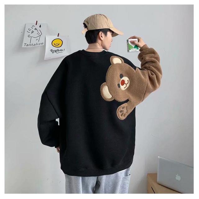 メンズ カップル服 お揃い 裏起毛 トレーナー トップス スウェット レディース くま ペアルック 長袖 スウェット スエットカップル服 切り替え ゆったり 大きいサイズ かわいい パーカー 熊 クマ 部屋着 おでかけ 韓国 リンクコーデ プルオーバー