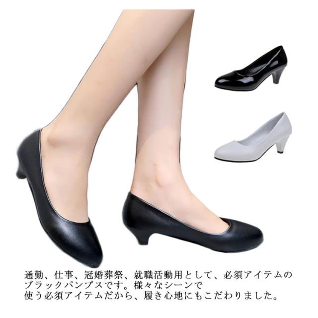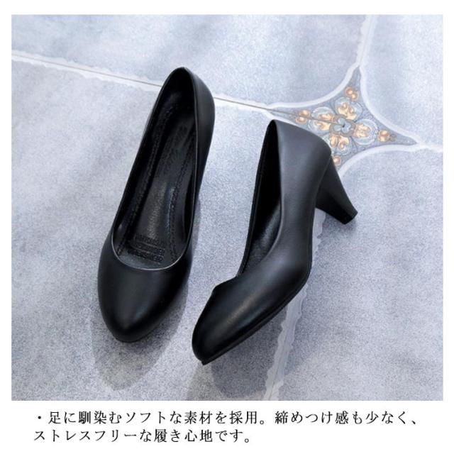 | 通勤、仕事、冠婚葬祭、就職活動用として、必須アイテムのブラックパンプスです。 様々なシーンで使う必須アイテムだから、履き心地にもこだわりました。 ◇履きやすさのポイント◇ ・ふかふかクッション入りなので、1日中歩いても疲れません。 ・静音リフトを使っているので、ヒールの音が響いたりする事もなく、脱ぎ履きも楽ちんです。 ・ソールはノンスリップ加工がされているので、つるつるの地面でも安心です。 ・中敷き下の、立体形状スポンジが土踏まずや中足骨にぴったりとフィットし、 足元が安定するのでスムーズに歩けます。 ・足に馴染むソフトな素材を採用。締めつけ感も少なく、ストレスフリーな履き心地です。 | |