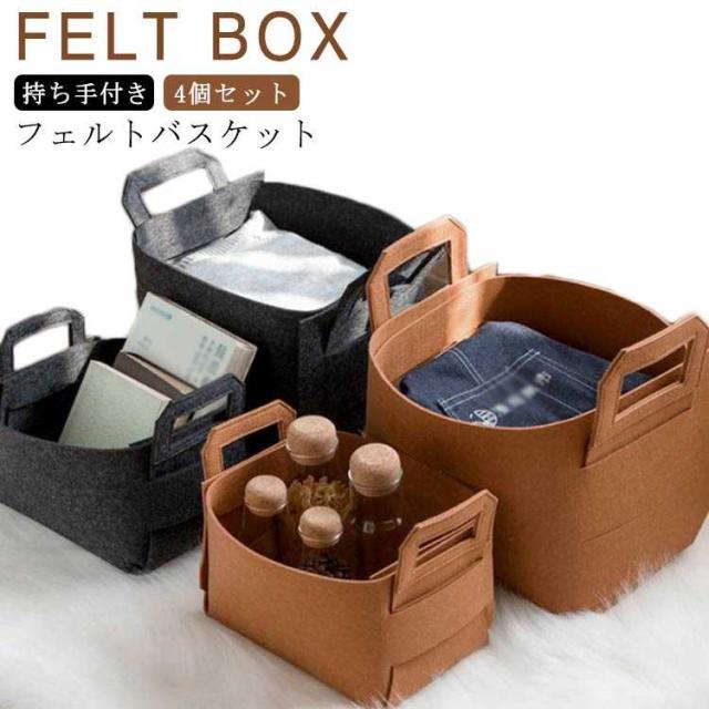 フェルトボックス お片付け フェルト フェルト 収納バスケット 収納ボックス 子供 ストレージボックス バスケット キッズ 4個セット トイバッグ 折りたたみ フェルト リビング インテリア ストレージバスケット 折り畳み 小物入れ 取っ手付き 収納ケース